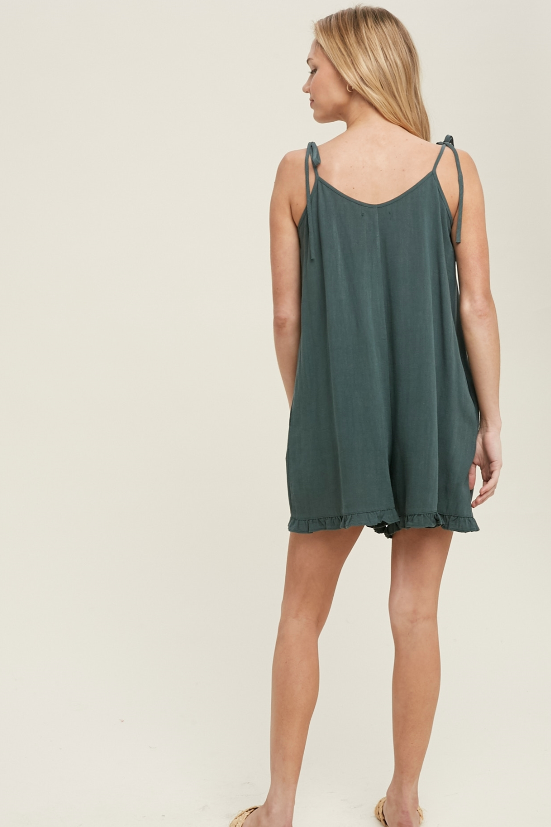This loose-fit romper is great for a casual day in the summer. Looks great with sandals or sneakers and a denim jacket.