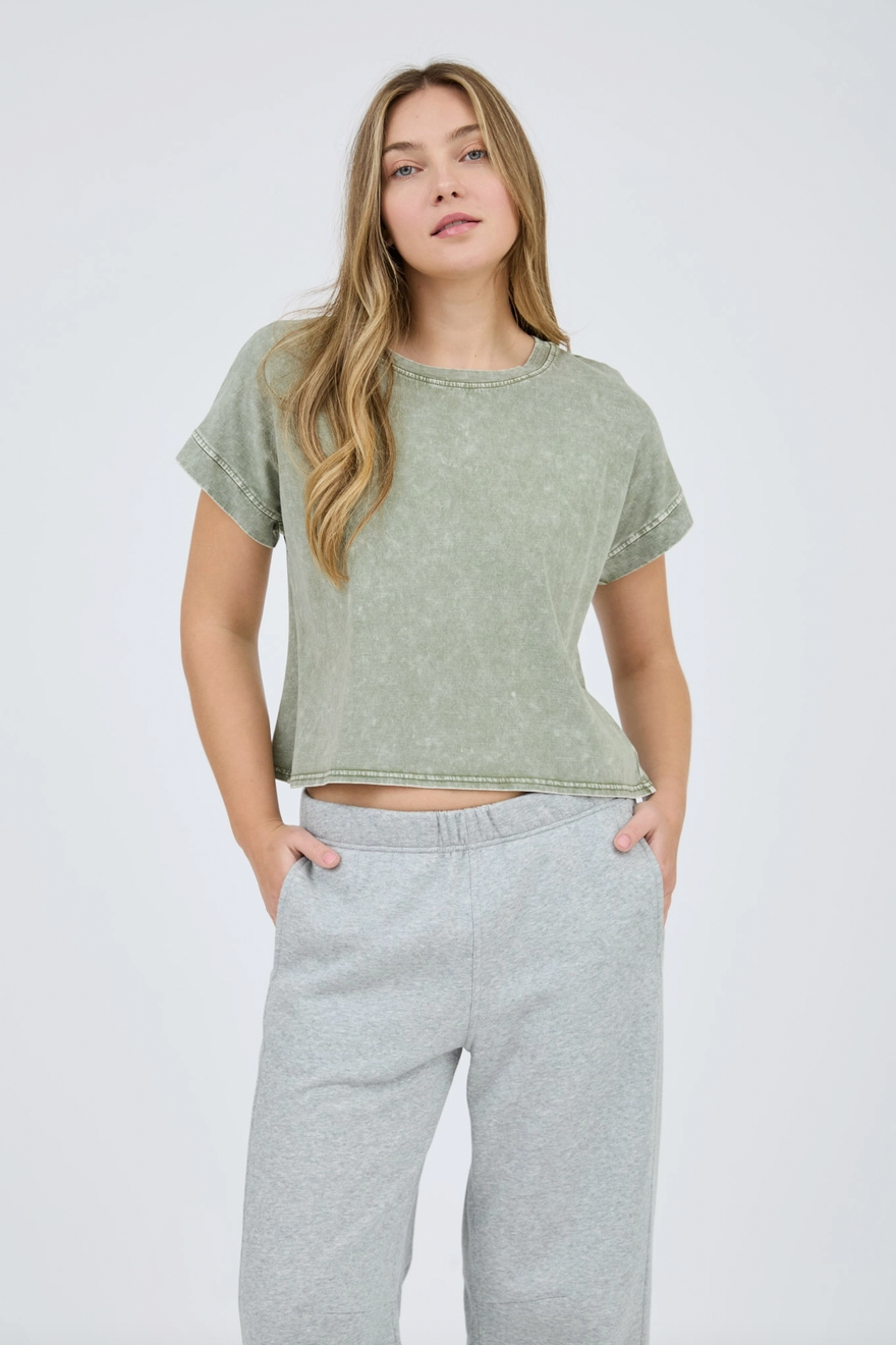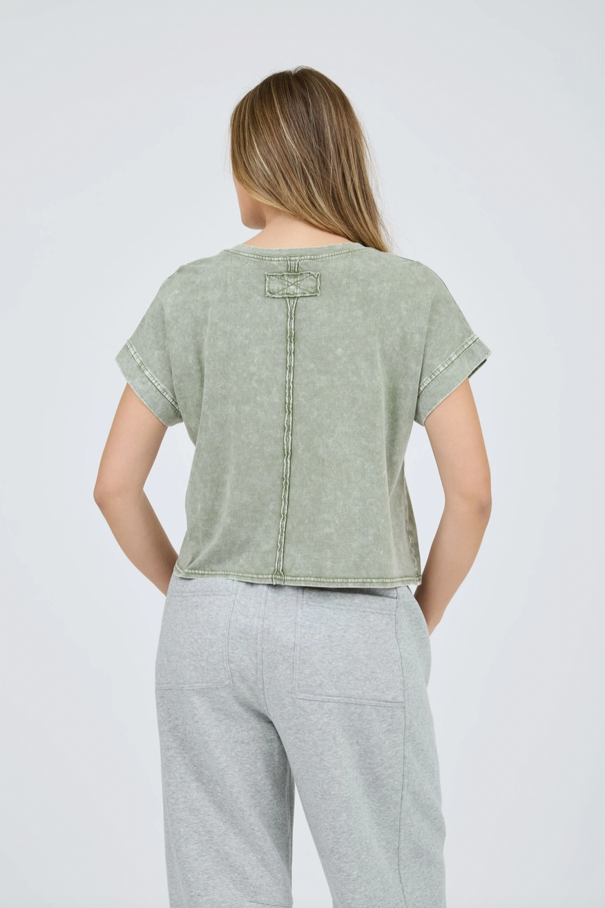 Round Neck Back Seam Detail Short Sleeve Top