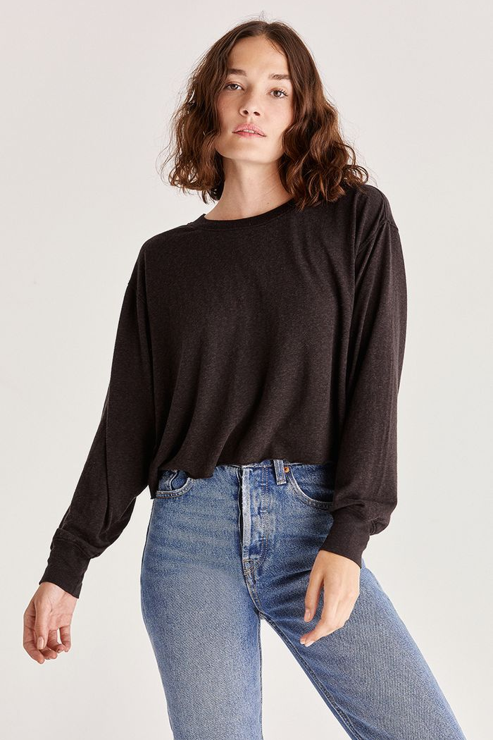 Pair alone, or under a vest. This casual soft knit top is a must have in all closets.