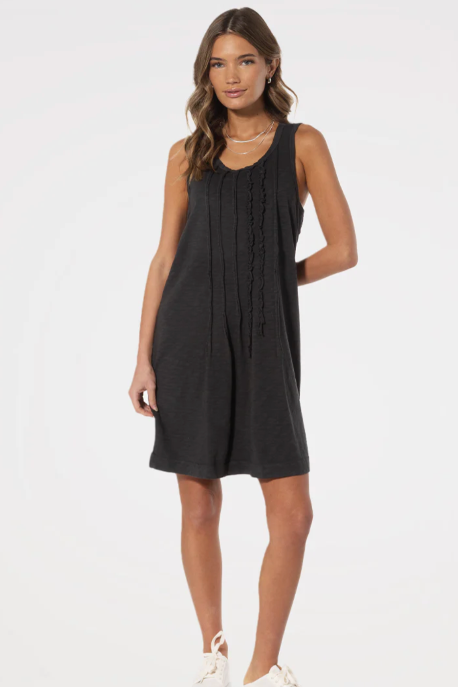 The Ruffle Pintuck Dress is an essential for summer. This dress is easy to slip on for the day and is breezy, with ruffle detailing down the front for a stylish touch.