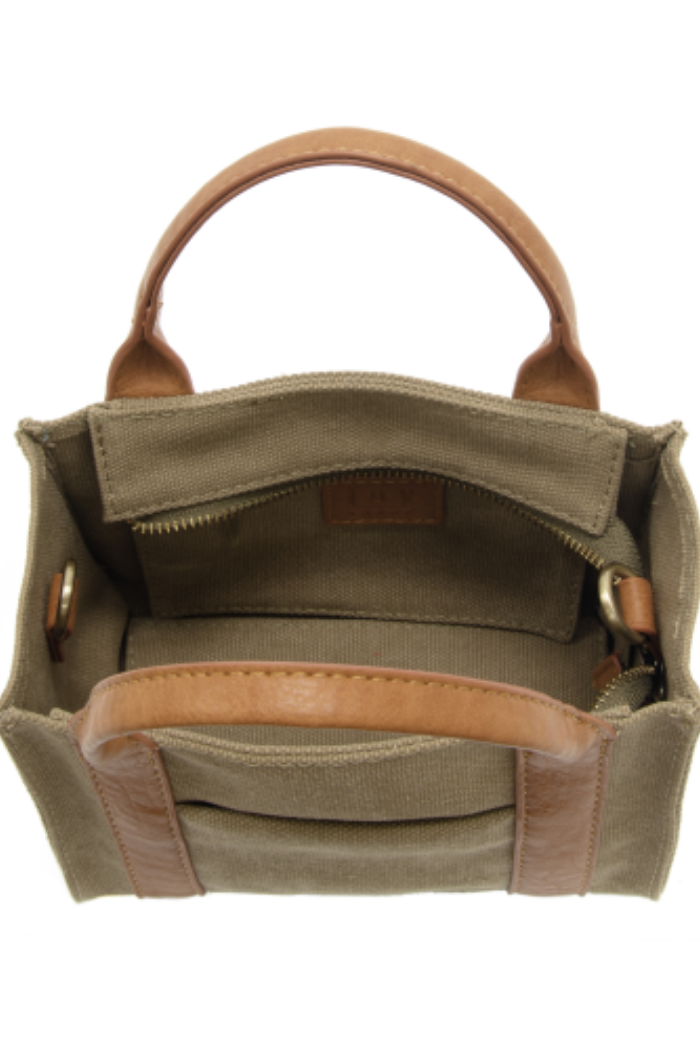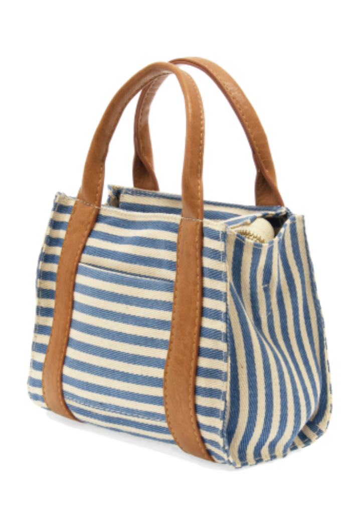 IN SOFTLY WASHED CANVAS TRIMMED WITH OUR BUFFALO VEGAN LEATHER YOU WILL BE READY FOR FUN WITH THIS ADORABLE MINI TOTE. SUPER CUTE CARRIED BY THE TOP HANDLE OR WORN AS A CROSSBODY USING THE REMOVABLE LONG CROSSBODY STRAP, AVAILABLE IN NAUTICAL STRIPES OR CASUALLY COOL SOLID COLORS, YOU ARE READY FOR SUNNY DAYS AHEAD. A TOP ZIP CLOSURE ACCENTED WITH OUR SIGNATURE LOGO ZIP PULL KEEPS YOUR BELONGING SECURE.