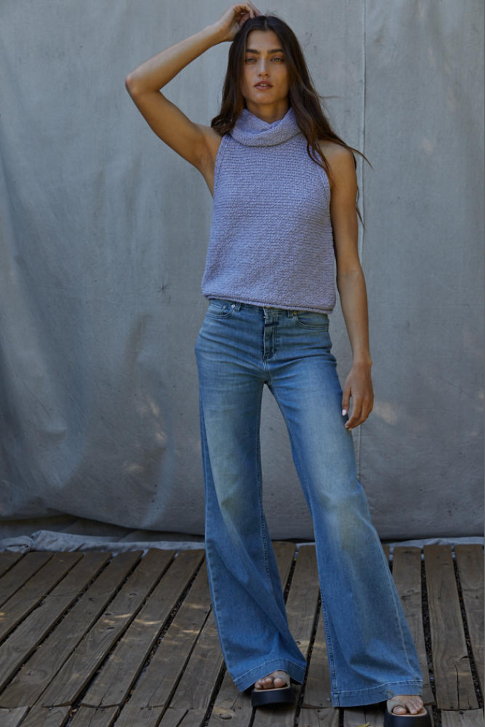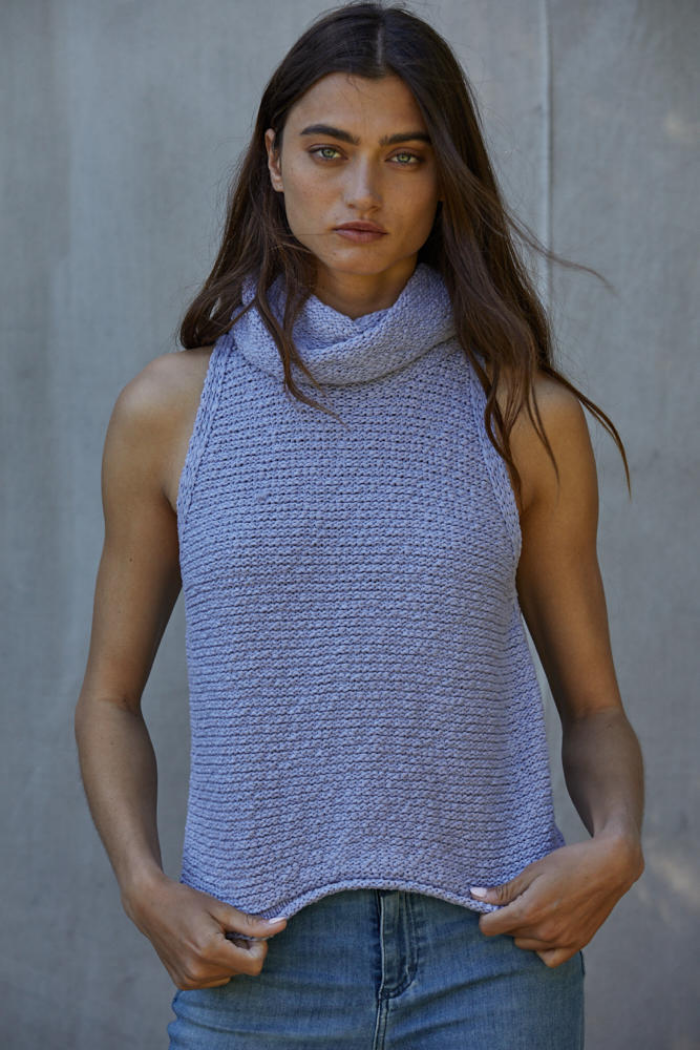 Knit Cotton Poly Sweater Sleeveless Mock Neck Top