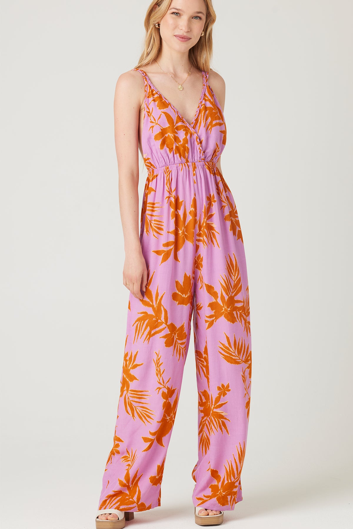 This jumpsuit is ready for wedge heels or sandals, warm weather. Easy out fit choice that can go from day to night.