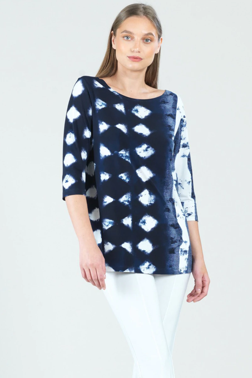 No pressure, but our Diamond Navy Scoop Neck Tunic is sure to be your best friend! This stunning item features a round scoop neckline, fitted elbow-length sleeves, and a straight hemline.
