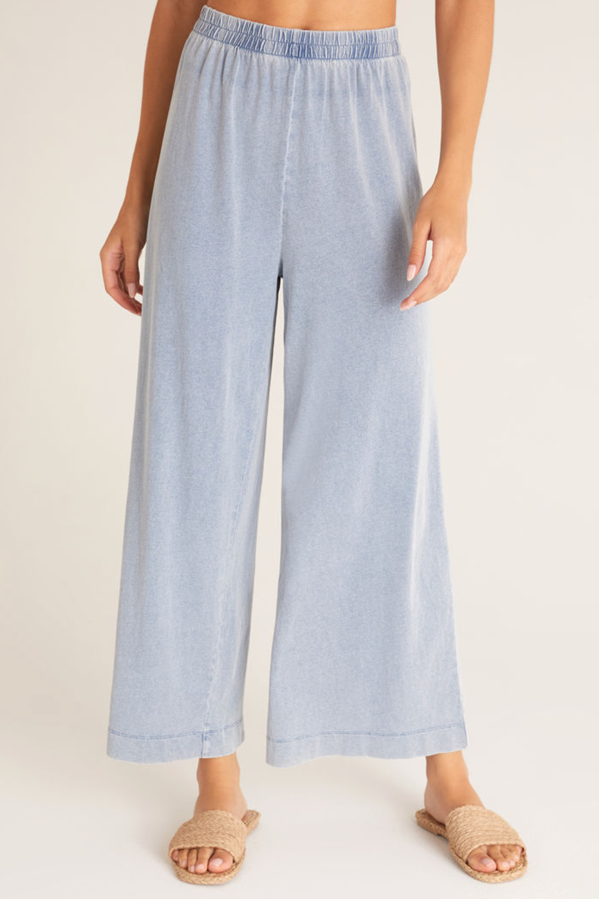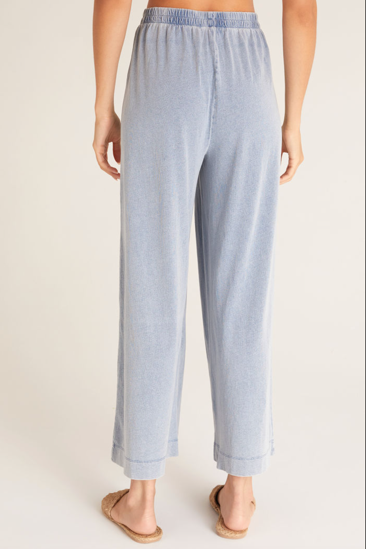 Mid rise + flare = a summer trend we're loving! With its vintage look and soft mineral wash, the 100% cotton Scout Jersey Denim Pant is a relaxed denim dream. The elastic waistband and smooth silhouette makes an easy-to-wear style that matches with any top.