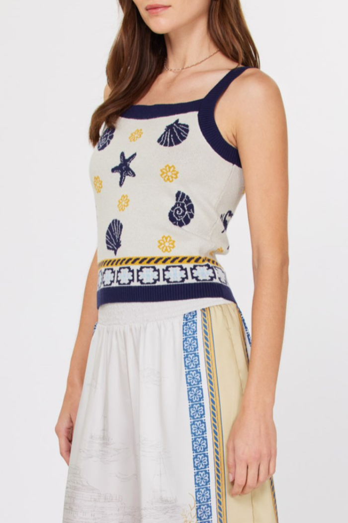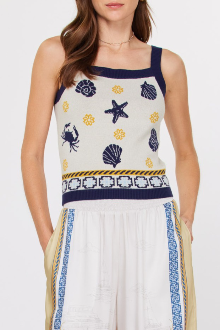 Soft and fun sweater tank for warm weather. Nautical print perfect for beach days