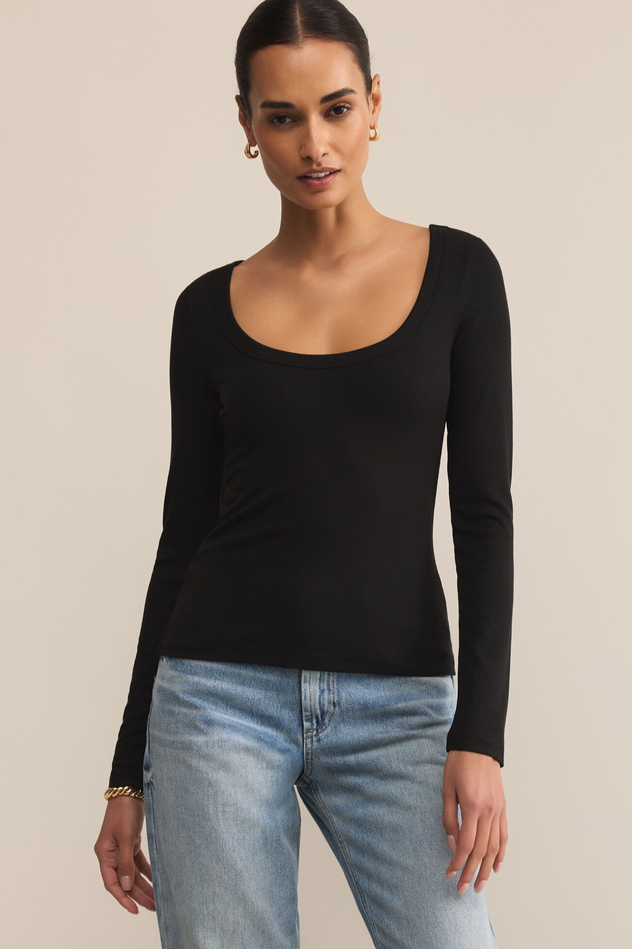 Fitted and buttery soft, this scoop neck long sleeve is crafted from our Second Skin baby rib for a sleek, flattering feel. Lightweight and flexible, it’s perfect on its own or layered under jackets and knits.