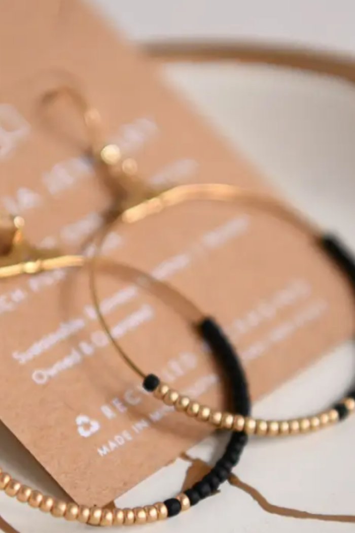 Seed Bead and Gold Plated Hoop Earring