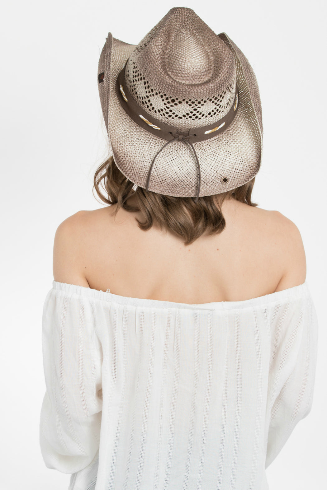 This is a classic western style drifter hat with a beautifully detailed band. A hidden pocket located in the crown of this hat is the perfect location to keep things you would rather “keep under your hat” such as IDs, credit cards, money, etc. O/S