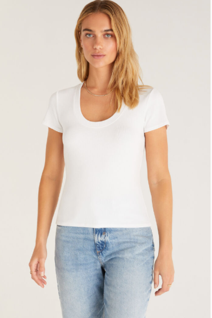A new silhouette in our Essentials capsule, the Sirena Short Sleeve Tee will be an instant classic. Made from our new Premium Feather Rib fabrication, this updated version of our Serena Tee features a slimmer fit and cap sleeves.