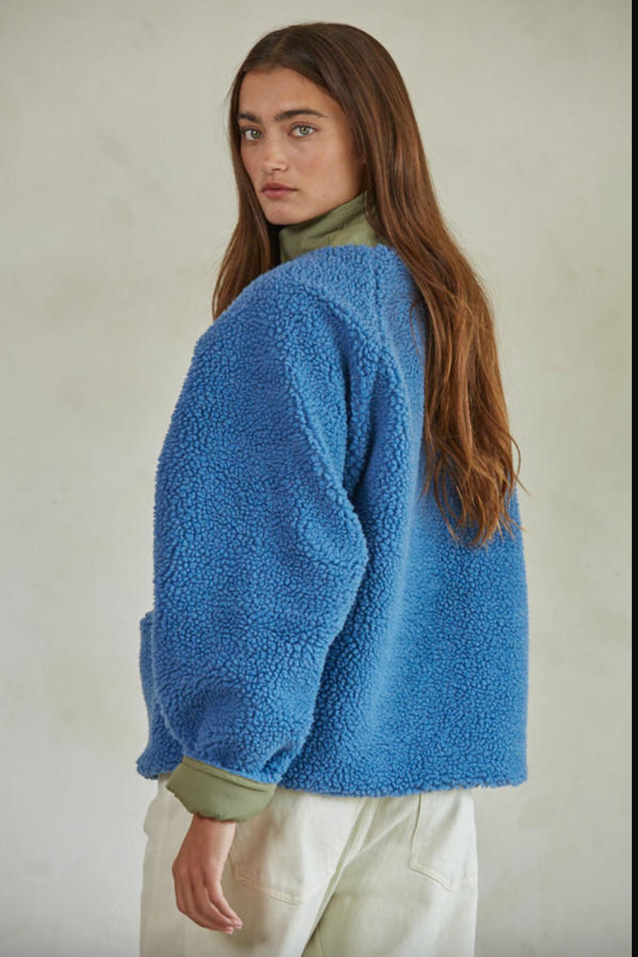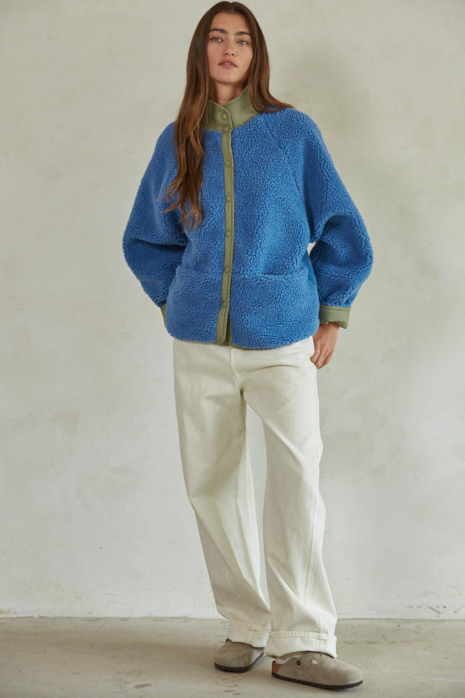 Woven Polyester Fleece Mock Neck Button Down Long Sleeve Reversible Jacket With Front Pockets And Nylon Lining
