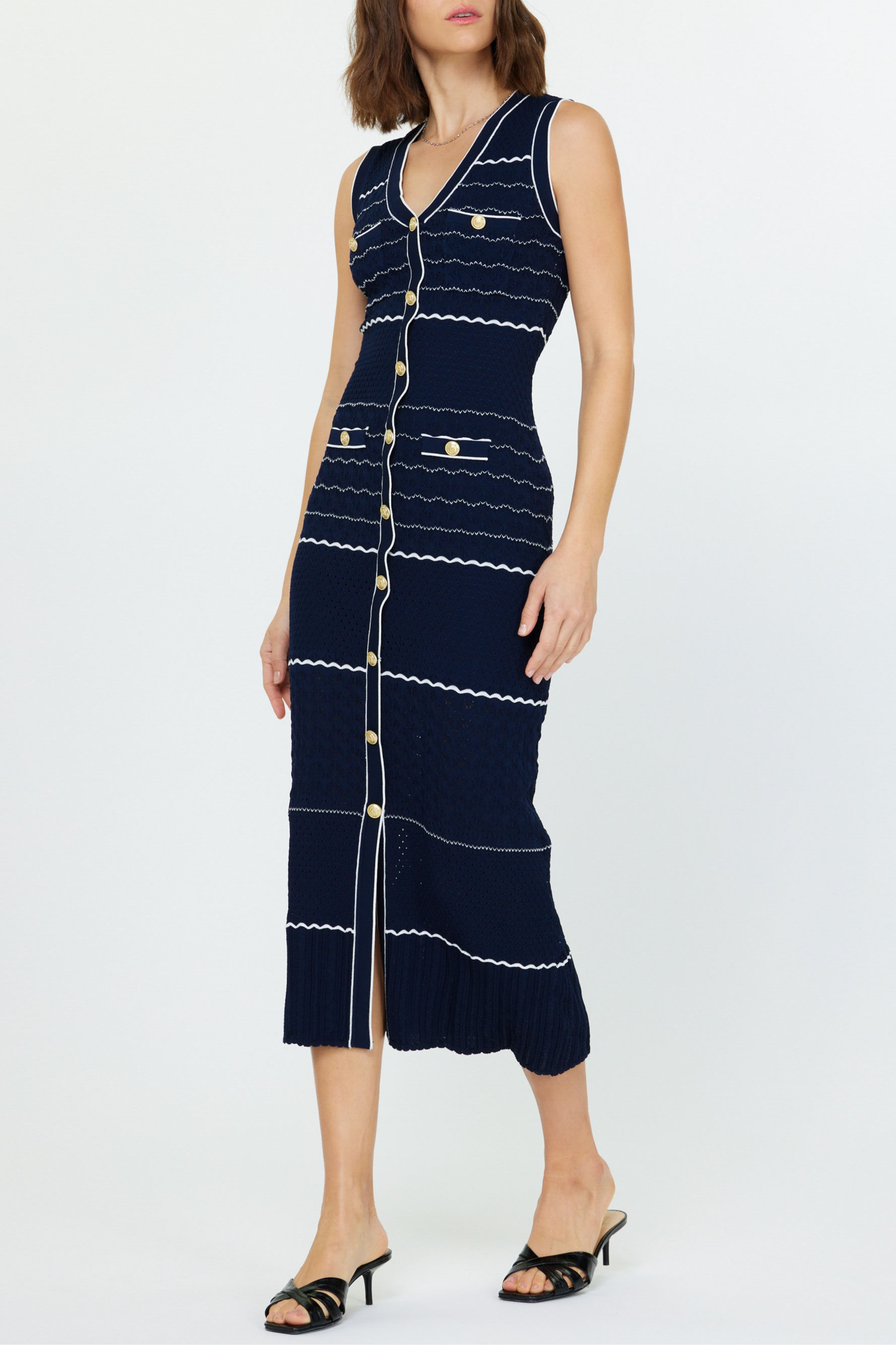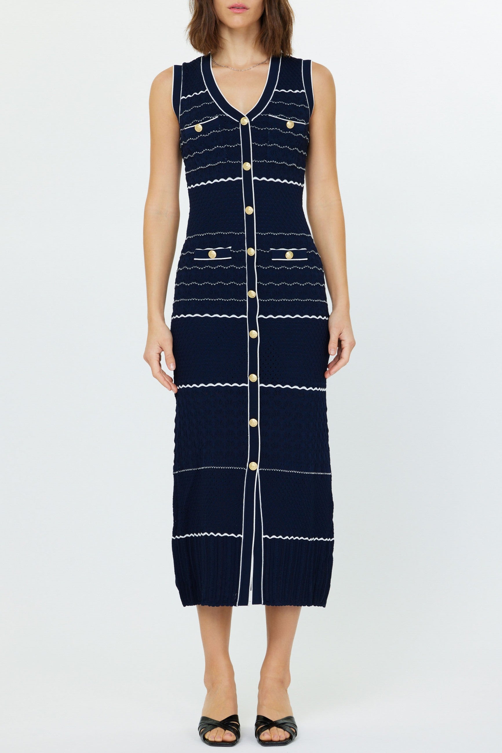 The Sleeveless Button Placket Midi Knit Dress is effortlessly refined crafted from a soft, stretchy knit that hug the body with comfort and ease. The V-neckline and button placket add a touch of structure and visual interest, while the midi length offers a flattering, elongating silhouette. Designed to move seamlessly from day to night, this piece pairs well with sandals or heels, making it a go-to for any occasion.