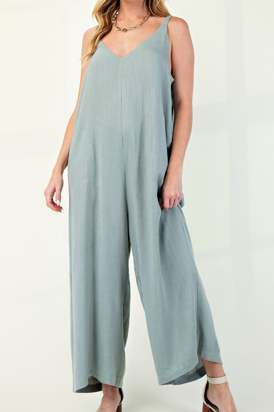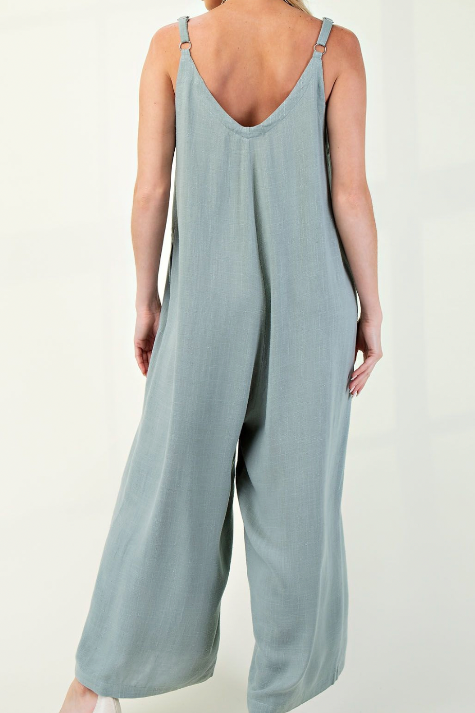 The Sleeveless Rayon Linen Overalls feature a minimal design creating an effortlessly chic look. These overalls are flowy and have a lightweight texture making them perfect for warmer weather and casual occasions. Featuring side pockets for practicality.