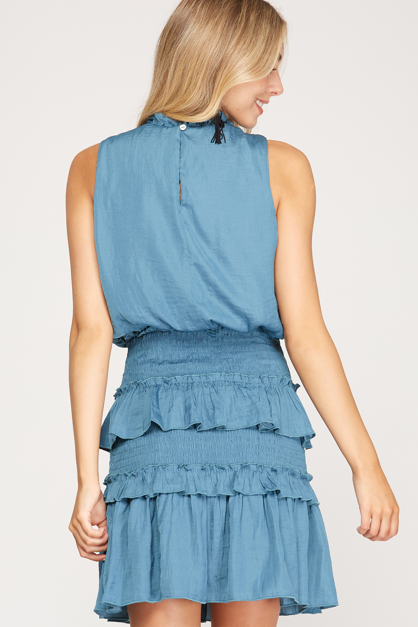 Smocked waist, ruffle detail, this dress is adorable for this season. Pair with a jean jacket for cooler nights. Model wearing size small