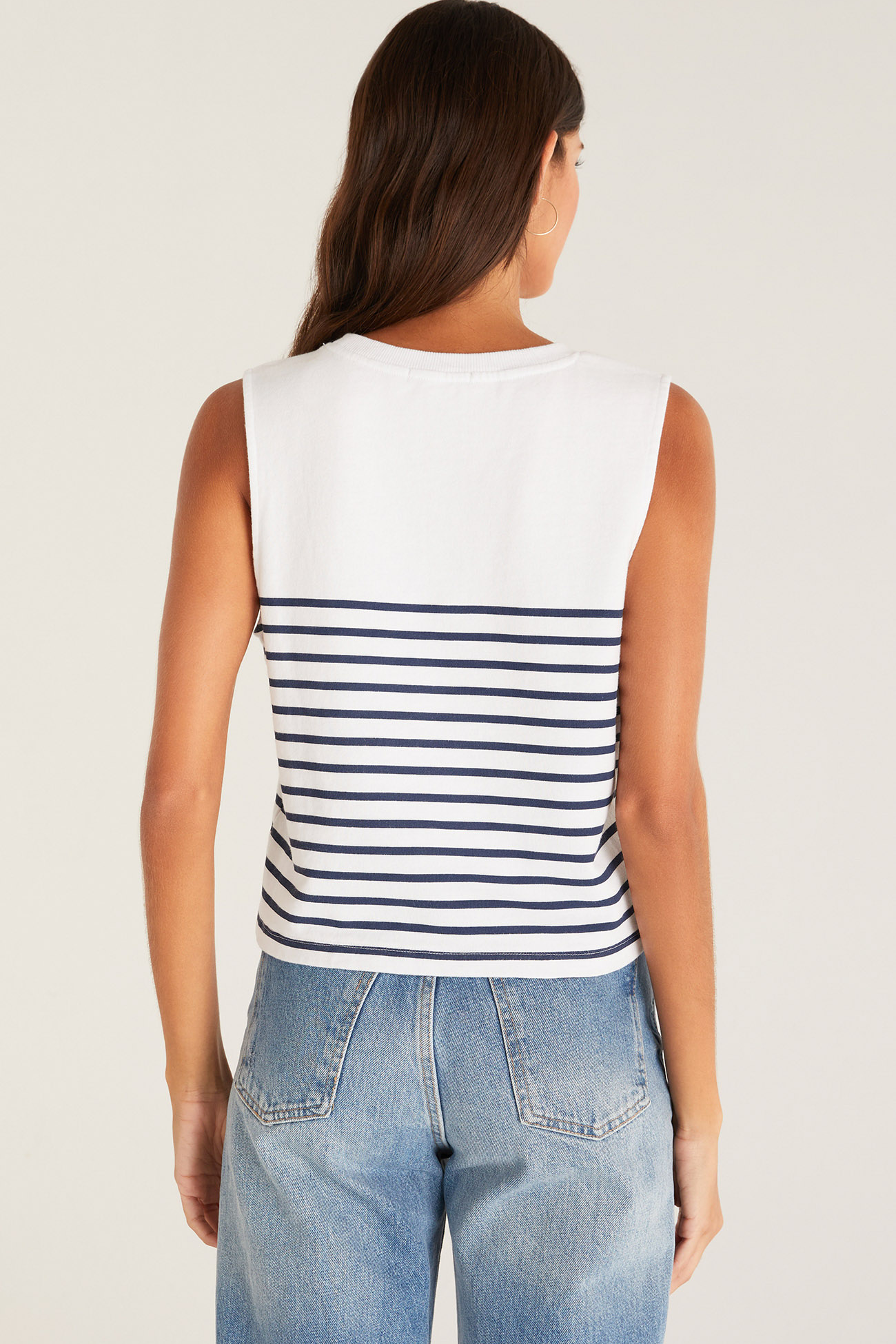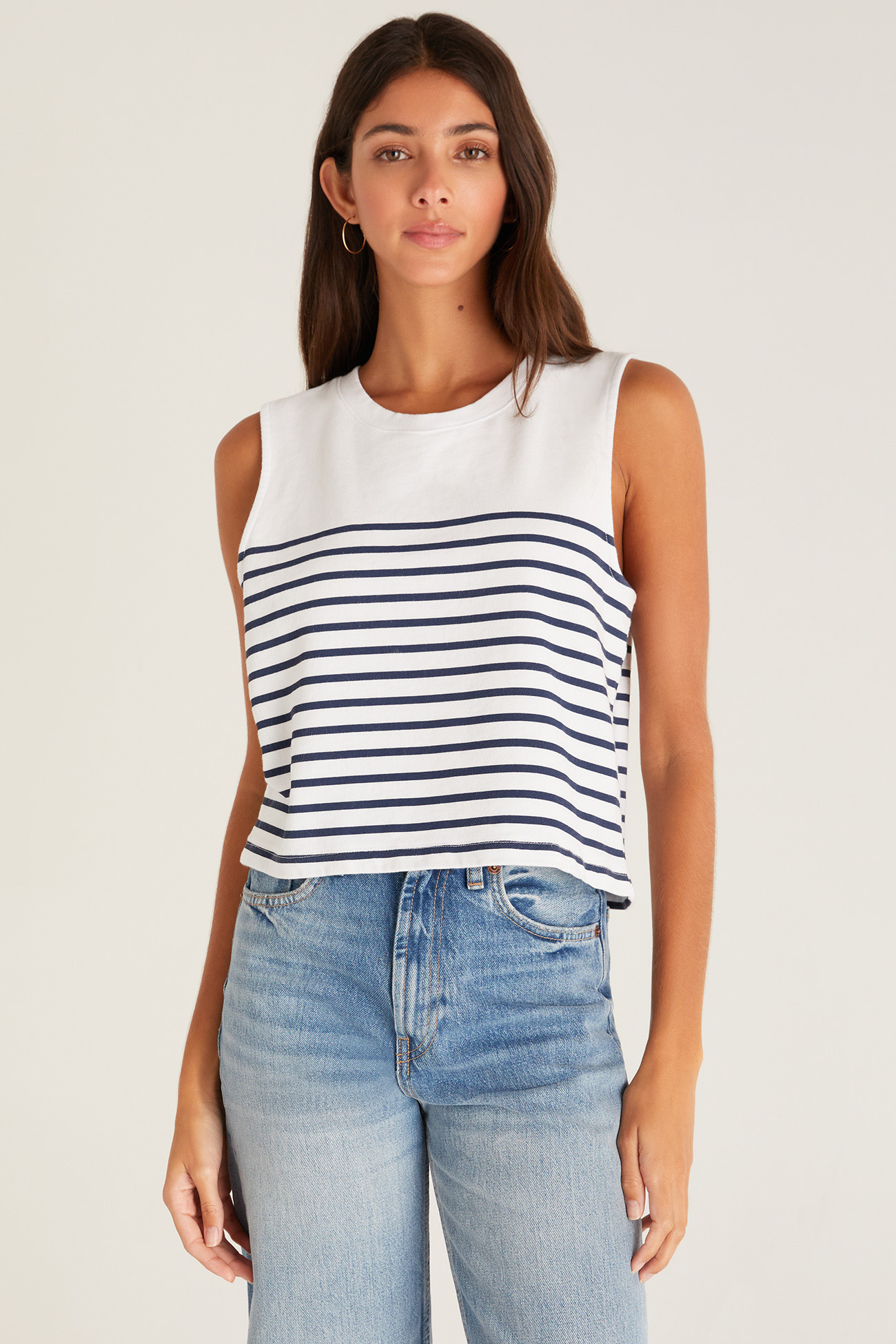 Make it a classic! The Sloane Stripe Tank is made using our Cotton French Terry knit fabric and features a classic placement stripe. Smooth on the outside, the terry loop texture is felt on the inside. This relaxed, crew neck top is meant to hit at the waistband and pairs perfectly with the Astrid Short.
