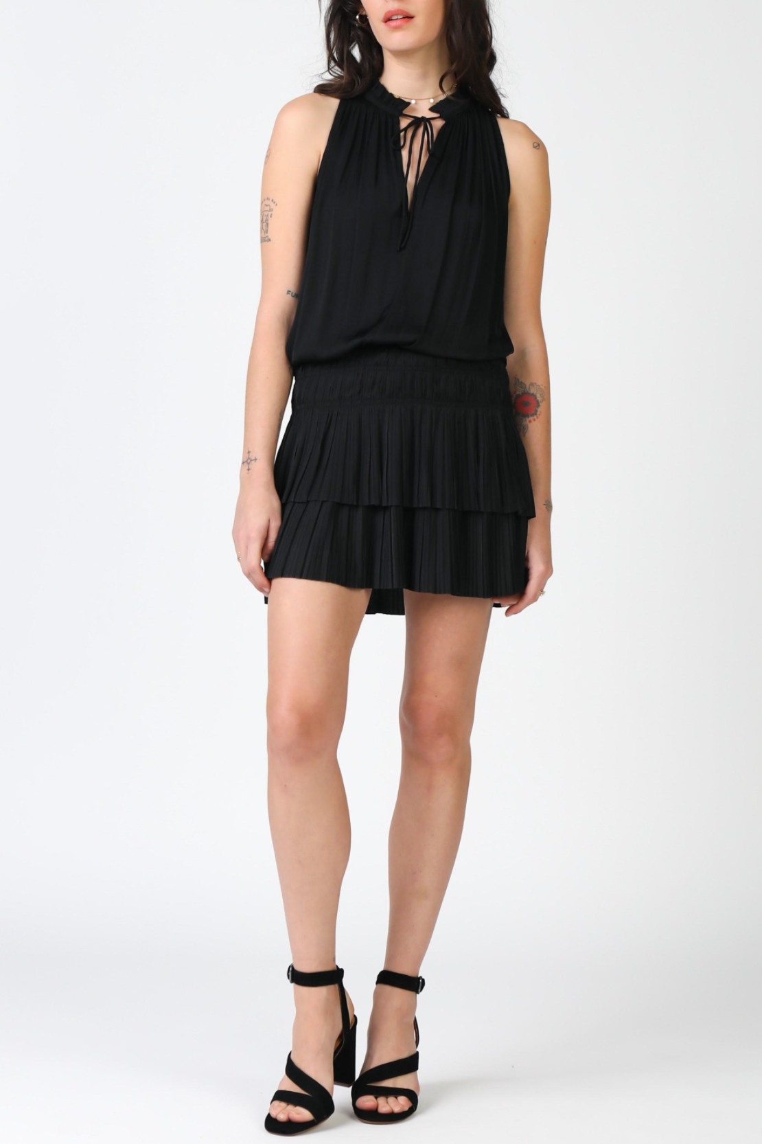 This sleeveless smocked waist dress. This dress is great for a wedding or cocktail party.