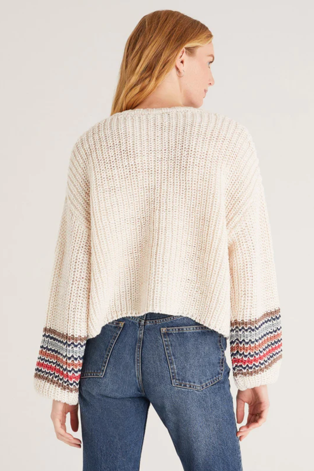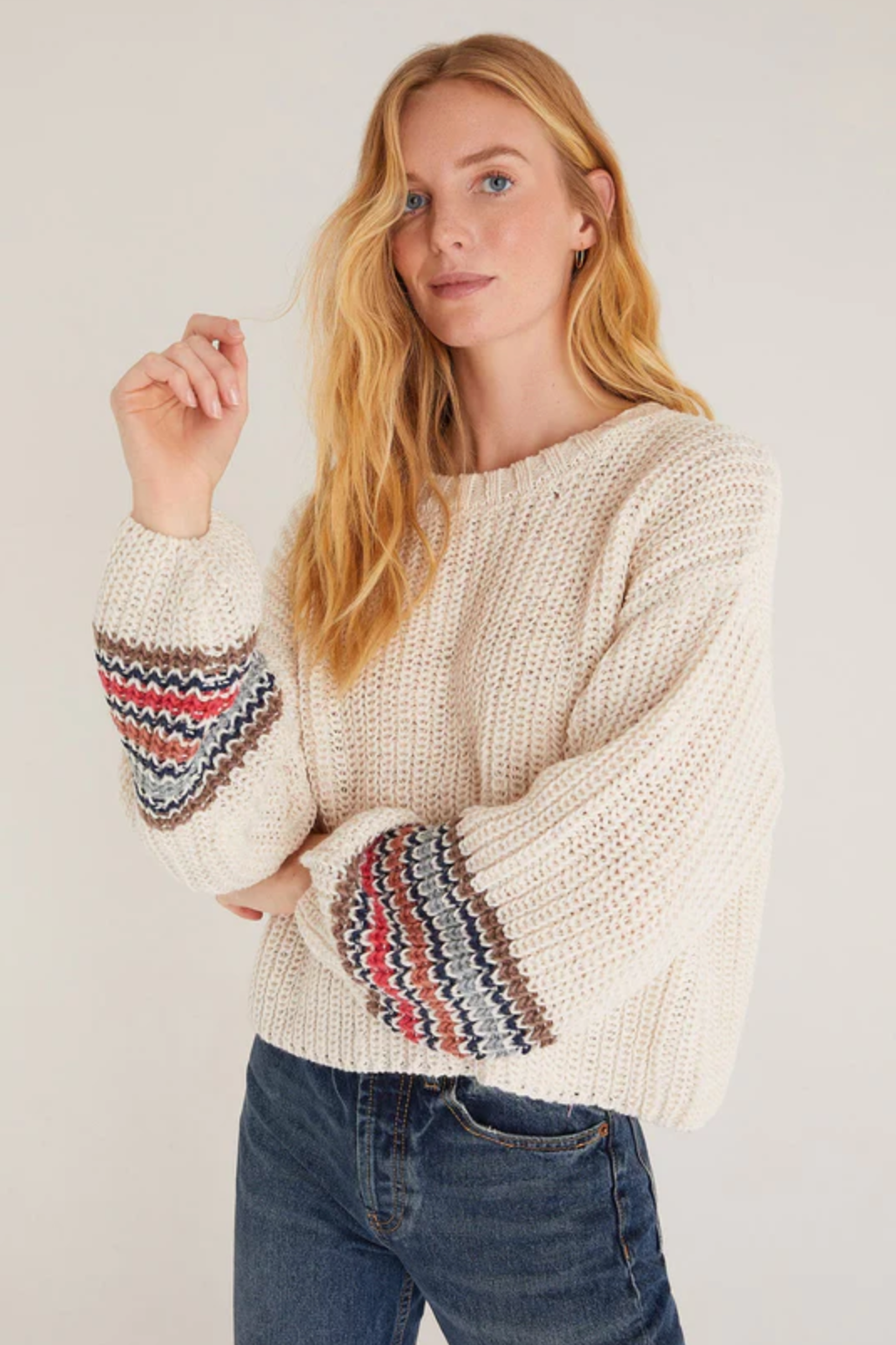 Soft and striped is just how we like it! We love the rainbow-like effect these placement stripes have in our cozy acrylic yarns. The Solange Stripe Sleeve Sweater is the perfect piece to add a touch of color to your everyday look while bringing you a relaxed, throwback fit and feel.