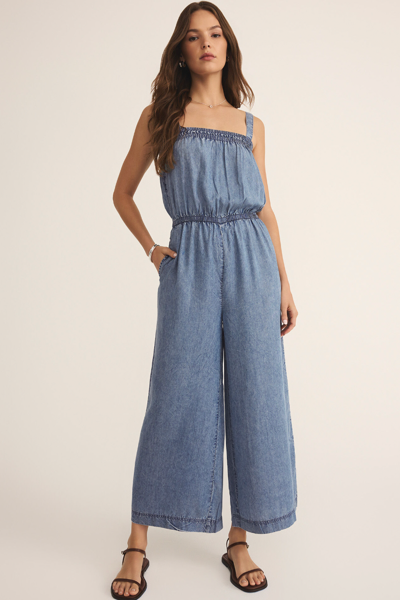 The Solara Chambray Jumpsuit is an easy go-to summer look! Featuring a square neckline with a regular fit, this breezy jumpsuit has a cinched waist for an adjustable fit. Pair with sandals to complete the look!