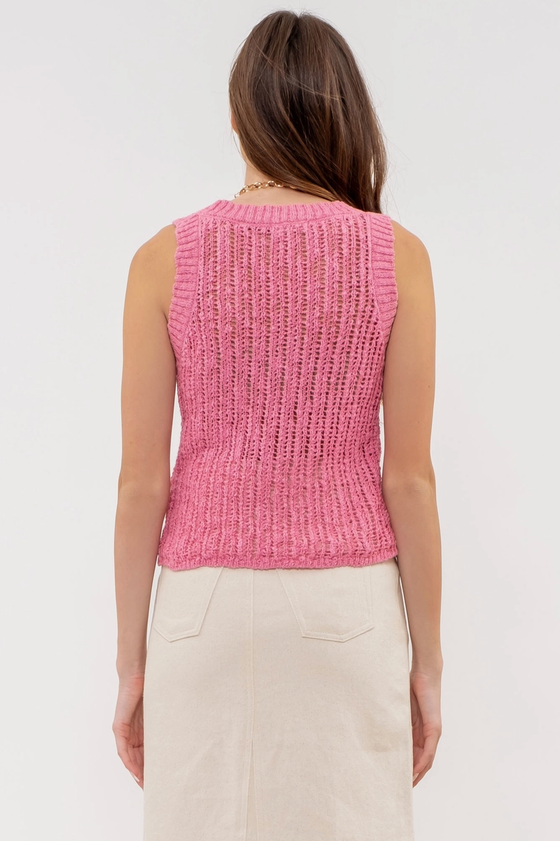 Wear this crochet knit top on your next vacation! This sleeveless top is great as a layering piece or to be worn on its own.