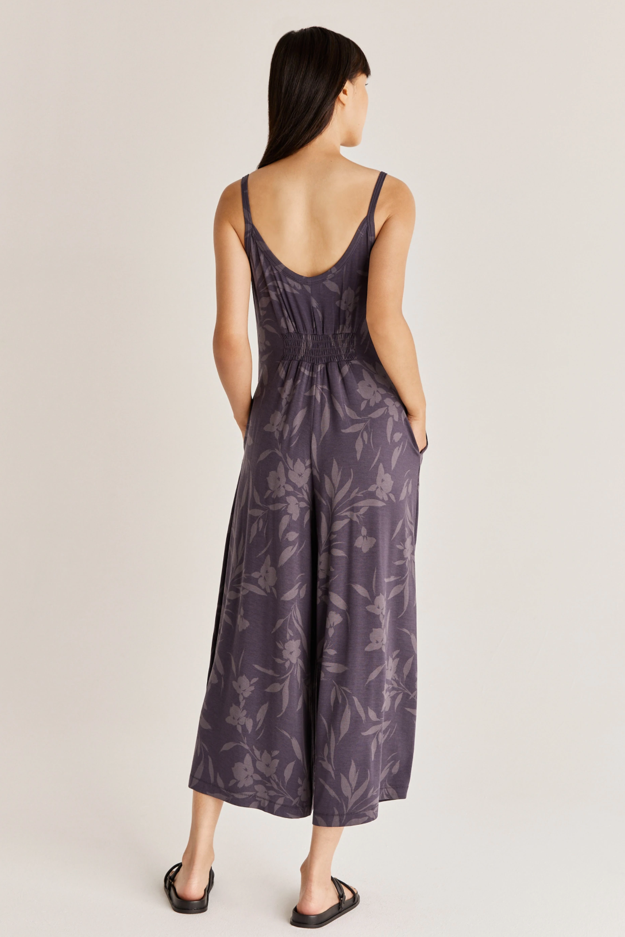 Sleek Jersey fabric, the Solstice Floral Jumpsuit sports extra wide full length legs, and smocking detailing at the center back for a great fit. The soft floral print offered in the Shadow color will be a favorite for almost any Spring occasion. Relaxed Fit.