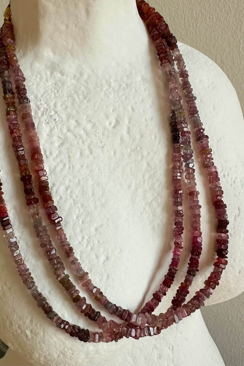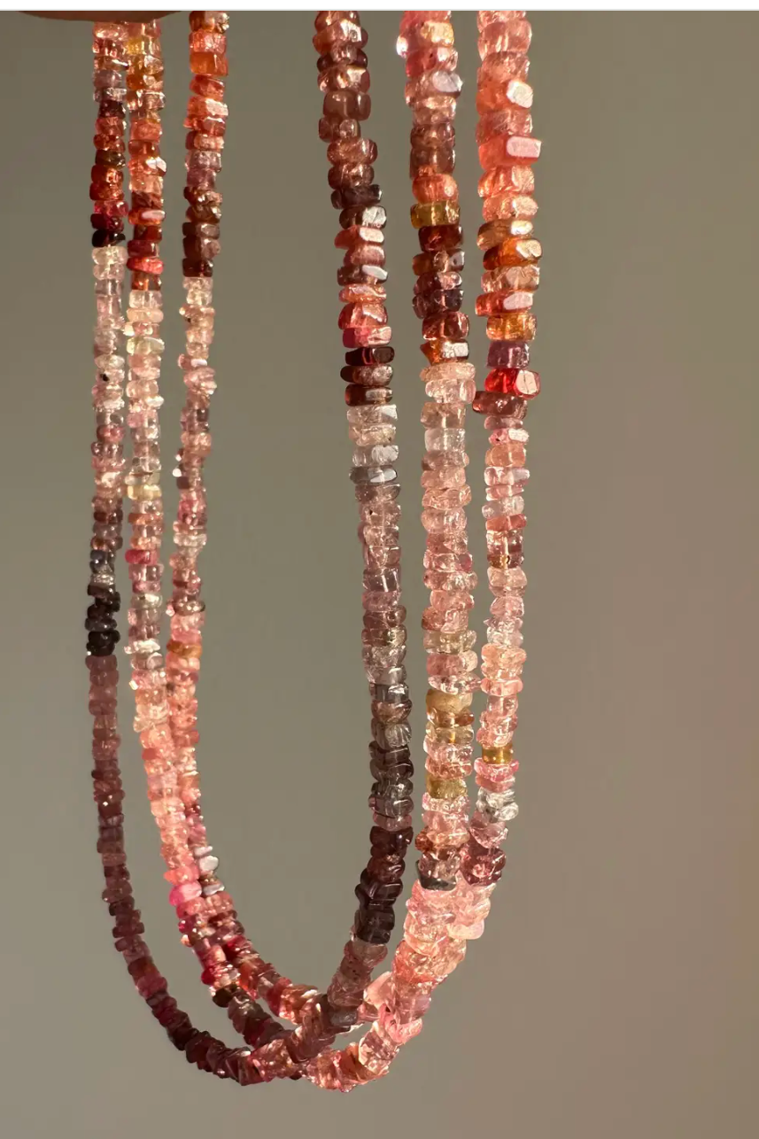 Pink and plum shades of gorgeous Spinel in 3-4mm square-cut Heishi beads.