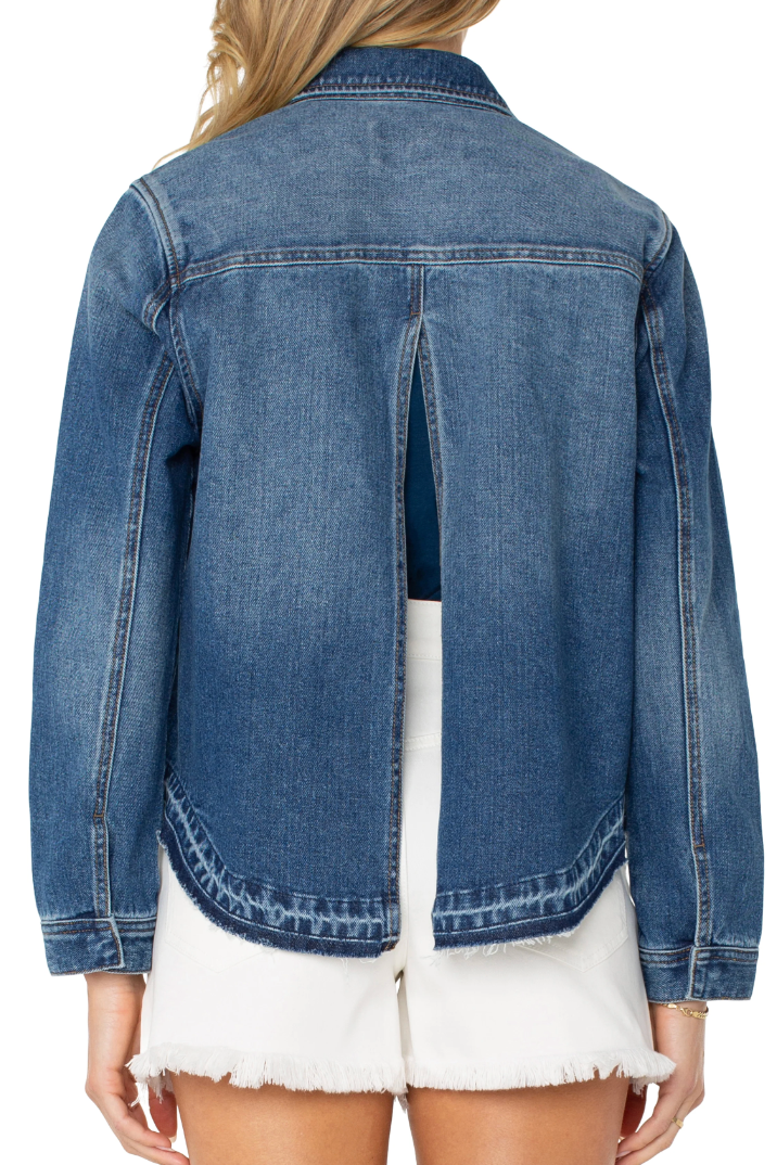 This versatile shirt jacket is perfect for any casual outing. Featuring a slit in the back that pairs well with a basic t-shirt for a refined look.