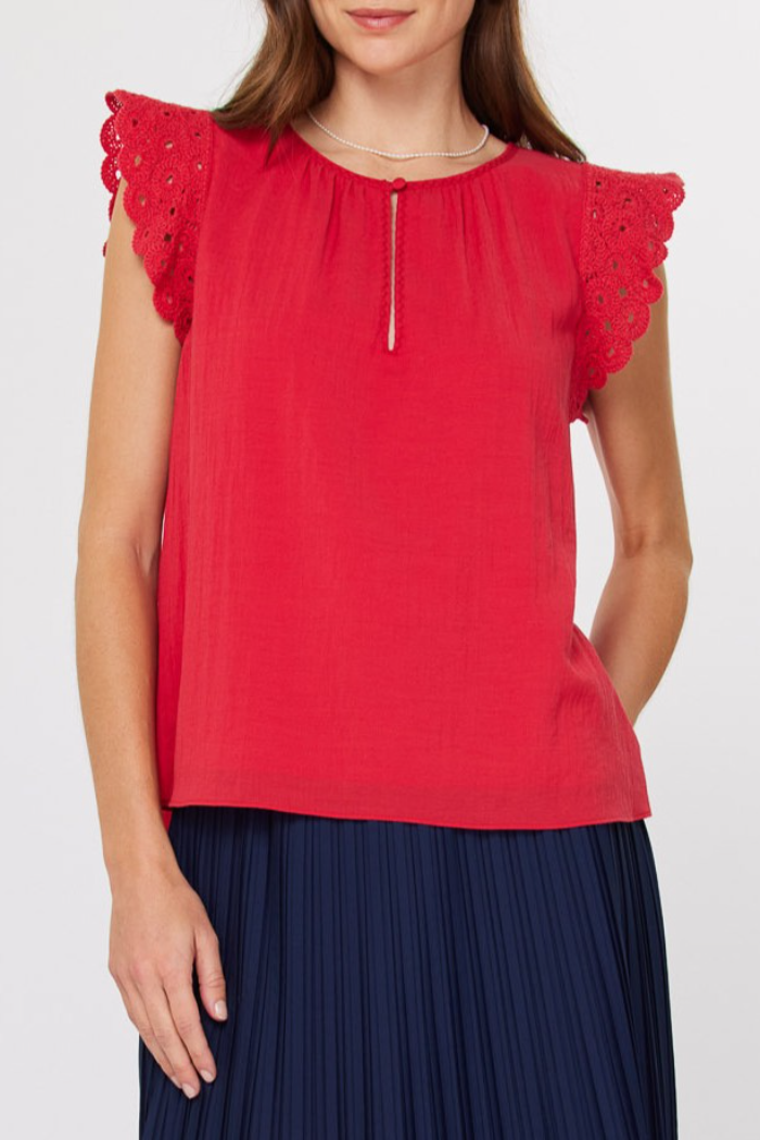 We love the crochet detail on the sleeves. Dress up or down, this top can also be transitional for all seasons.