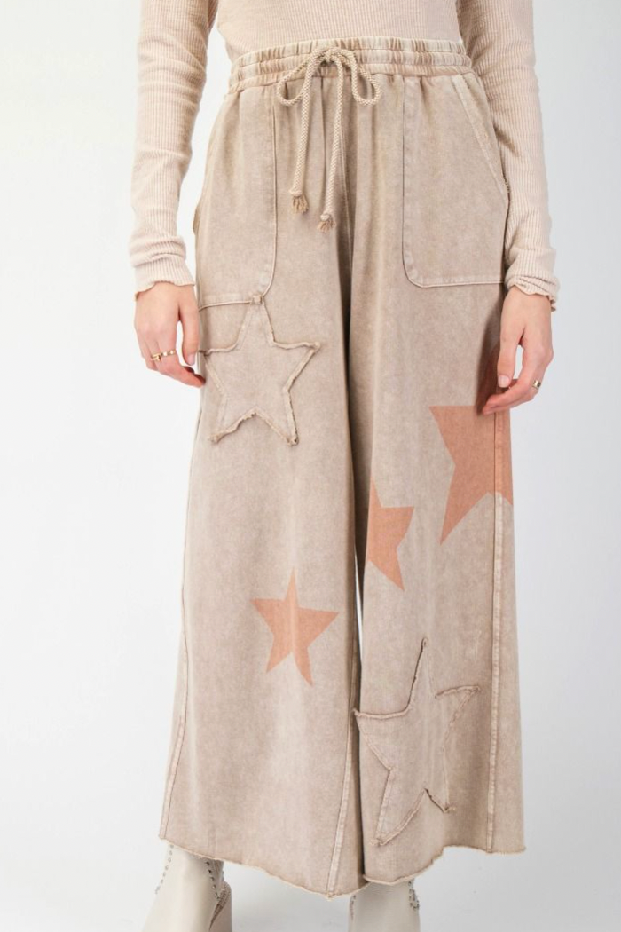 The Star Patch and Print Terry Knit Pants have a playful print with a comfortable fit. With an elastic waistband with a drawstring as well as large patch pockets, this adds practicality to the design. Ideal for casual outings or loungewear.
