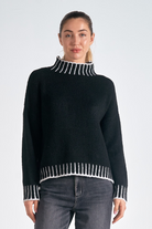 Stay warm and stylish in the Stitch Detailed Sweater. This sweater has stitch detailing on the collar, sleeves, and along the bottom of the sweater that sets it apart from a regular sweater and elevates the look.