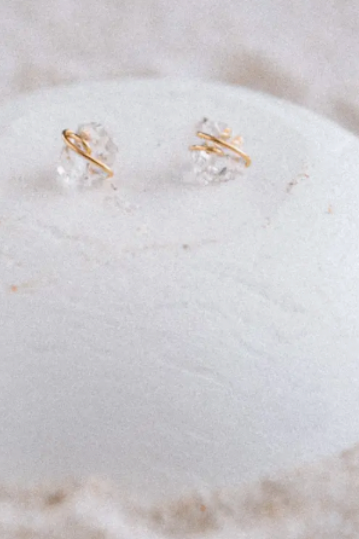 These elegant stud earrings feature raw, natural stones delicately wrapped in gold-filled wire for a minimalist yet sophisticated look. Each pair is uniquely crafted, showcasing the organic beauty of unpolished gemstones. Their lightweight and timeless design make them perfect for everyday wear, effortlessly complementing both casual and formal outfits. Handcrafted with care, these studs add a subtle touch of nature-inspired charm to your jewelry collection.