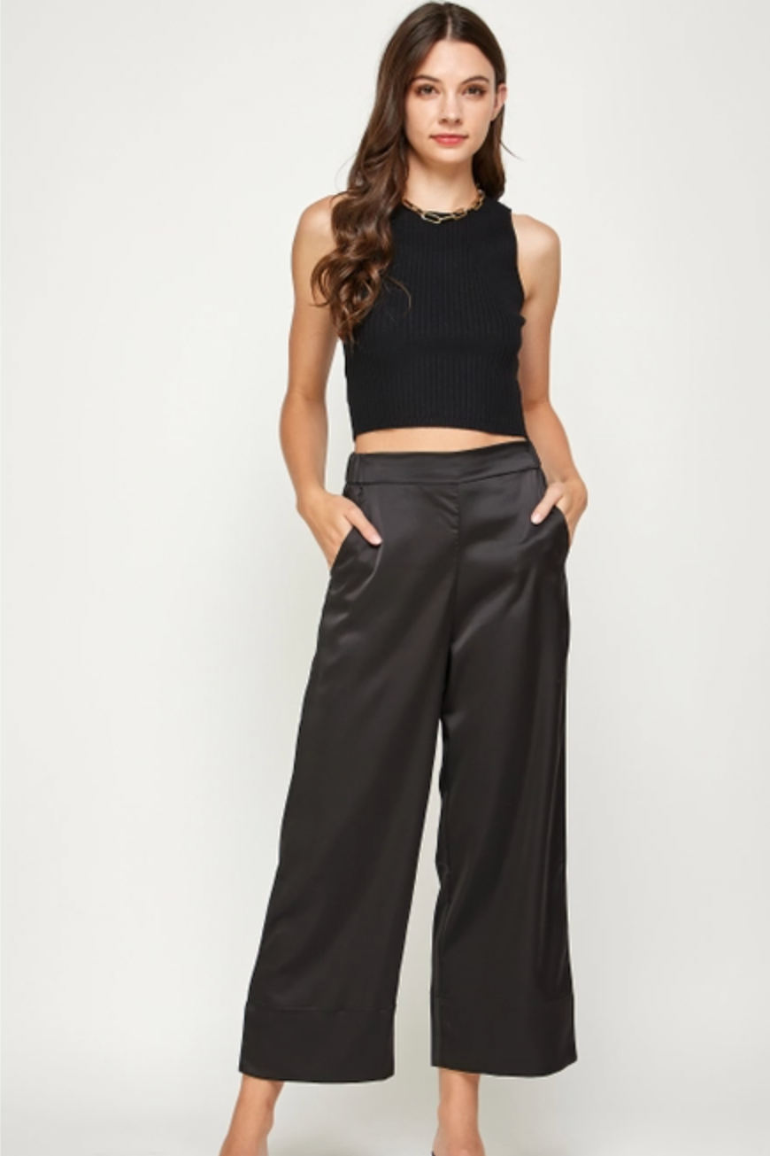 THE ONLY PANTS YOU NEED. LIGHTWEIGHT, COMFORTABLE PANTS PERFECT FOR VERSATILE DRESSING. THESE CROPPED PANTS ARE SURE TO MAKE A STATEMENT SHAPED TO A WIDE LEG SILHOUETTE AND SIDE POCKETS.