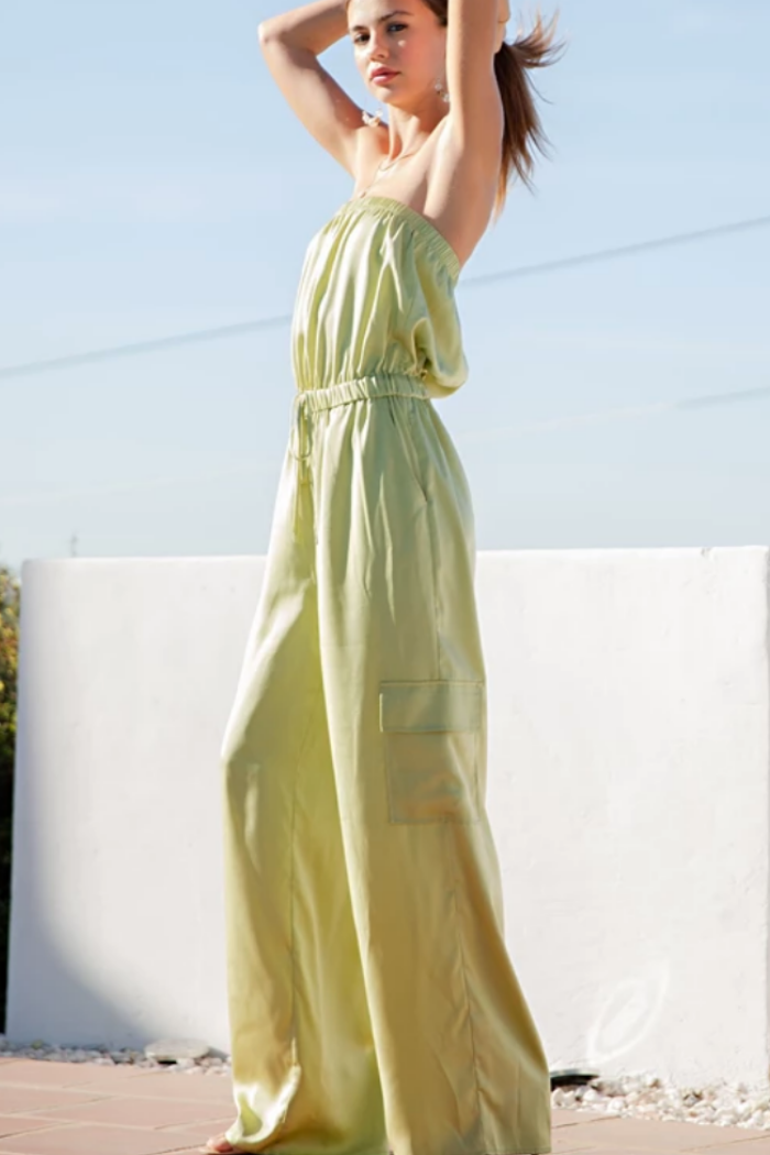 Get dressed up in this Straight Leg Jumpsuit! This jumpsuit has a sleek silhouette, complete with a stretchable waist and tie for comfort, and a cargo design pant with pockets.