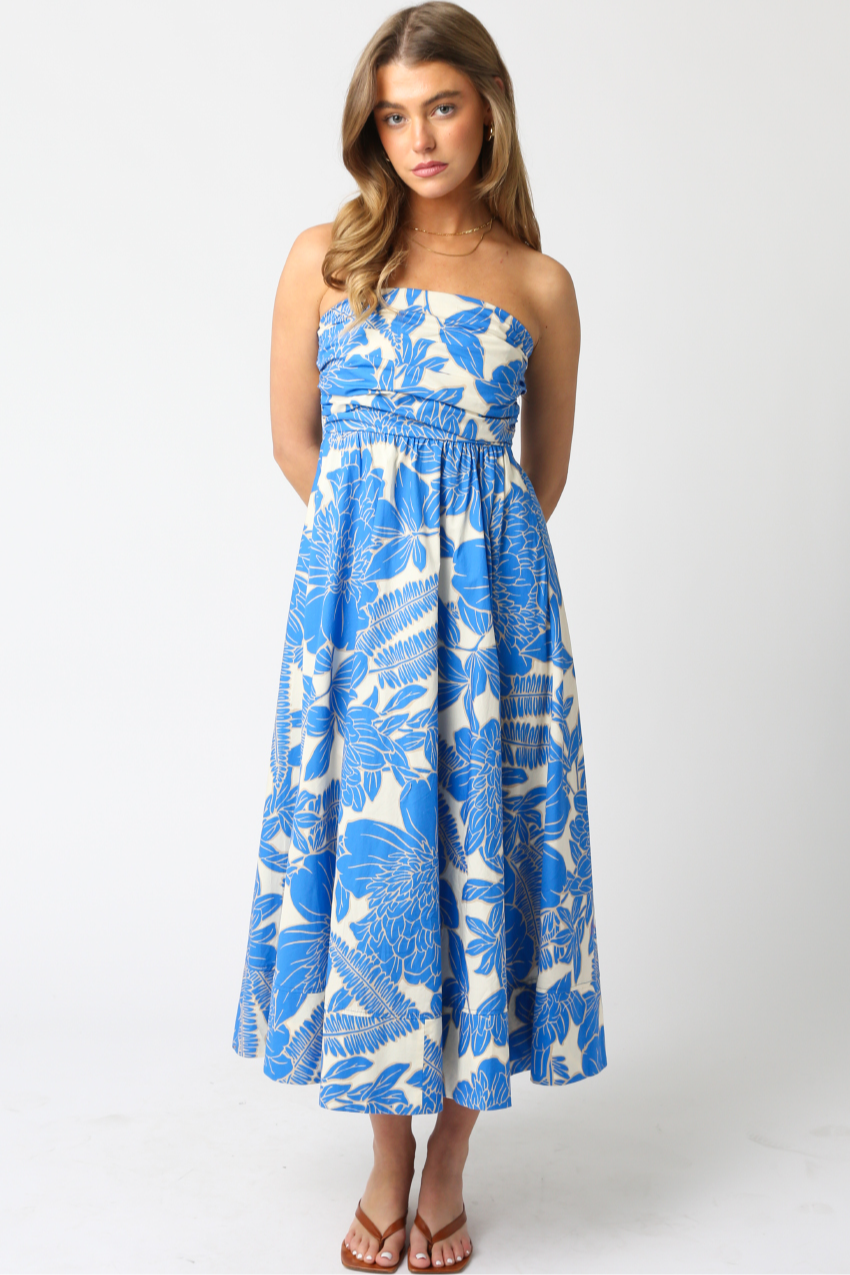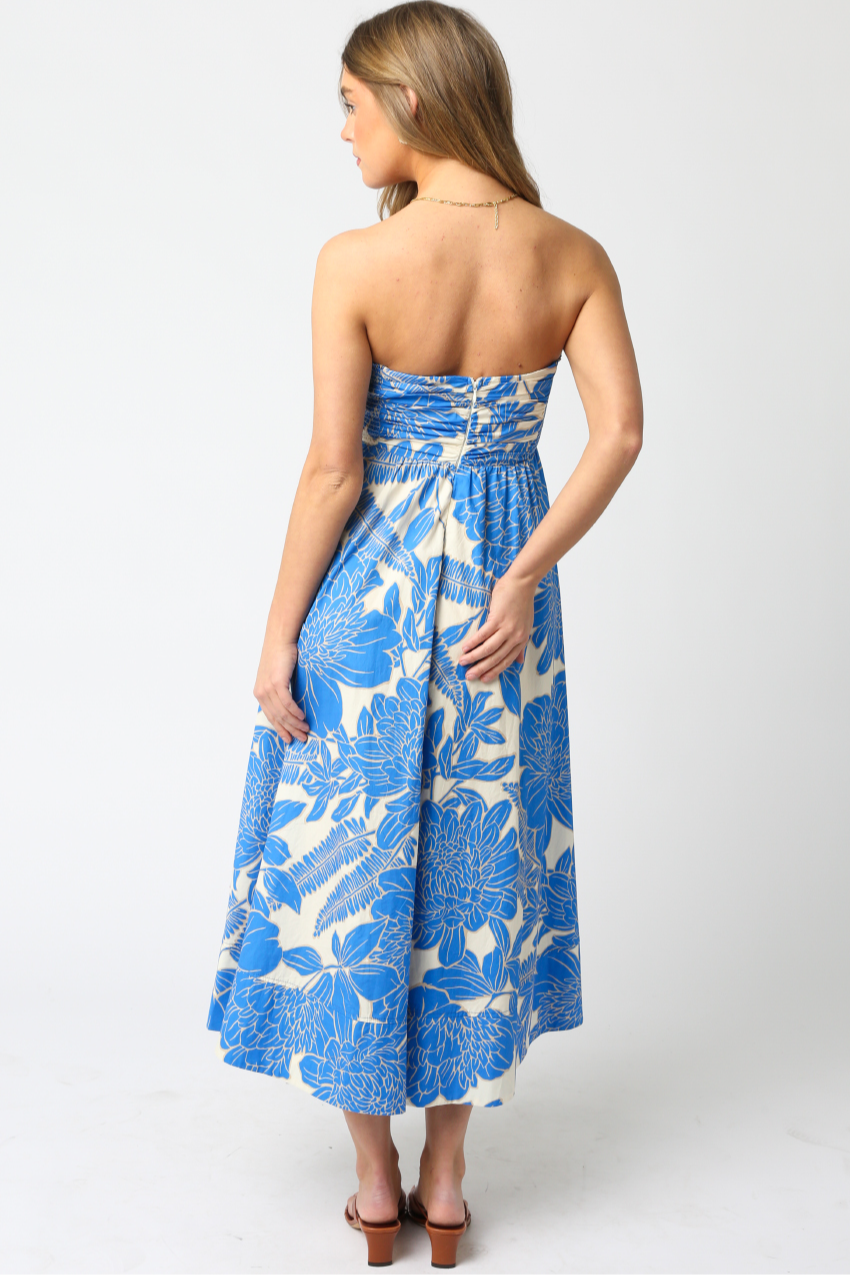 This strapless printed maxi dress screams warm weather and this dress. From occasions to a casual outing this dress fits the bill. Pair with wedge shoes or sandals.