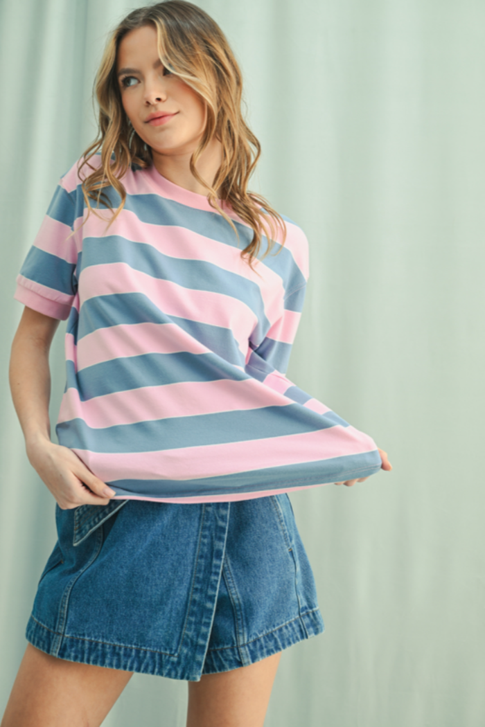 This uber soft and full of comfort basic striped top can go great with any denim bottom or khaki.