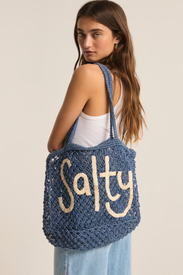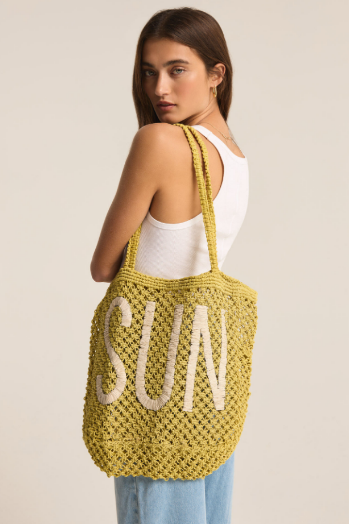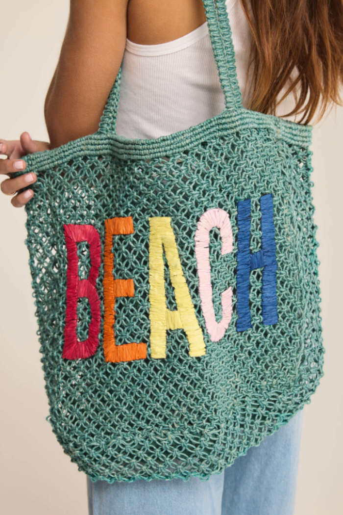 This is the perfect bag for summer! Ideal for taking to the beach, this braided tote is complete with a fun graphic script detailing.