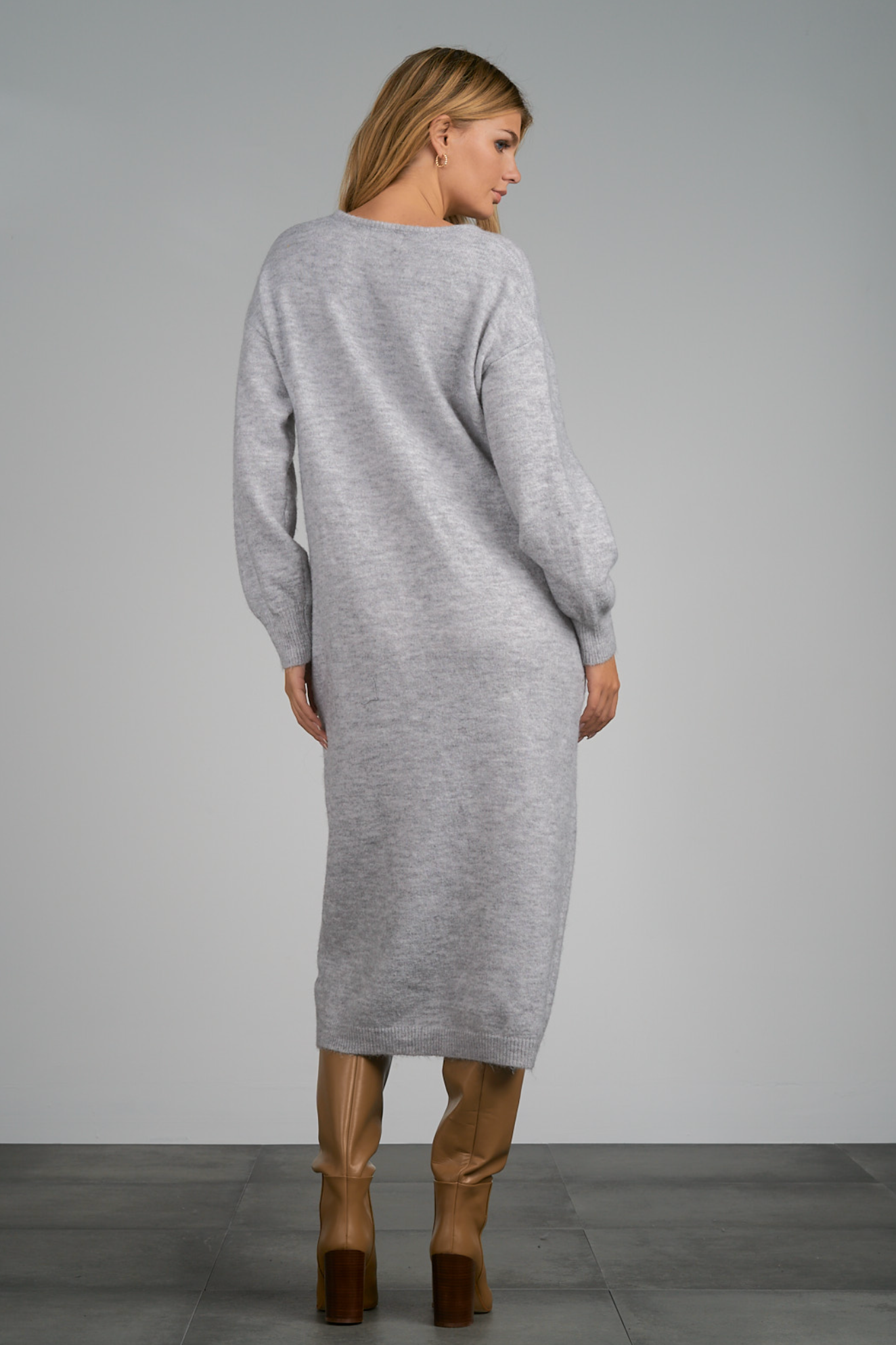 This ash sweater dress looks great with boots or sneakers. Perfect for a casual look, dressed up, or for easy travel.