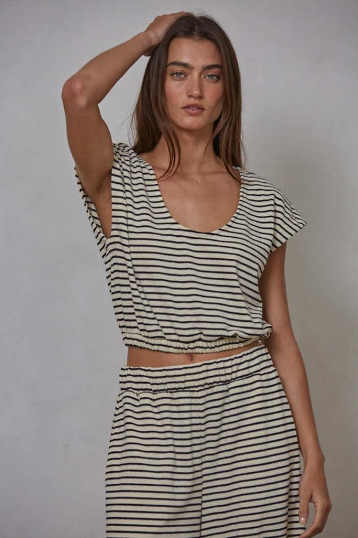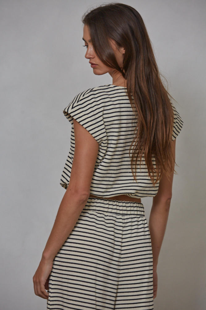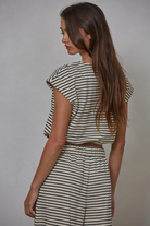 Knit Polyester Cotton Striped Round Neck Short Sleeve Top With Elastic Waist Band (Optional Set Style# L8447)