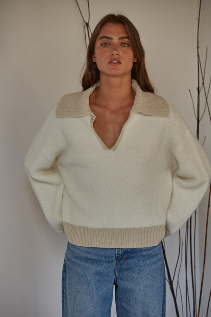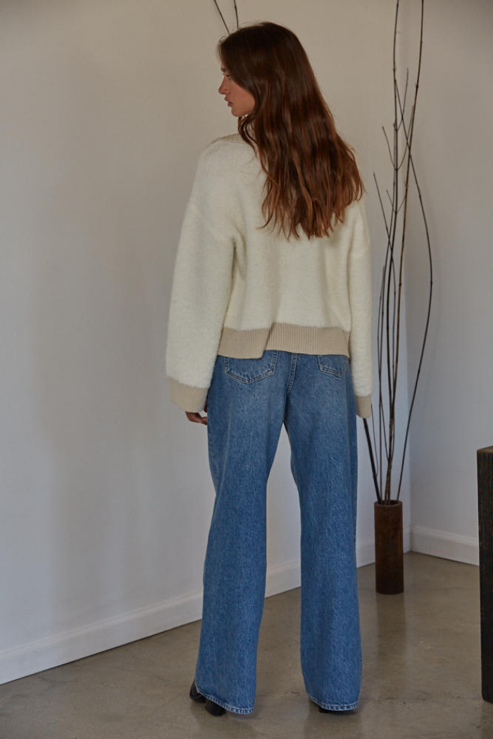 Knit Sweater Acrylic Polyester Nylon V-Neck Collar Long Sleeve Top