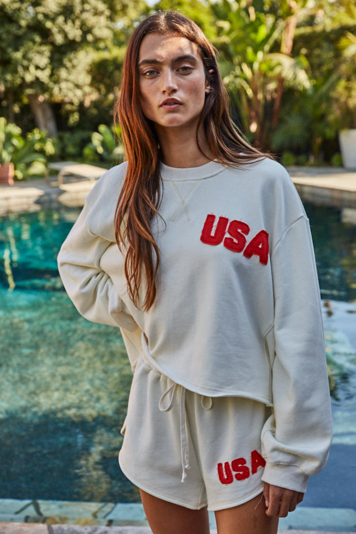 Knit Cotton French Terry Crew Neck Long Sleeve Pullover Top With USA Patch Work (Optional Set Style# L8250)