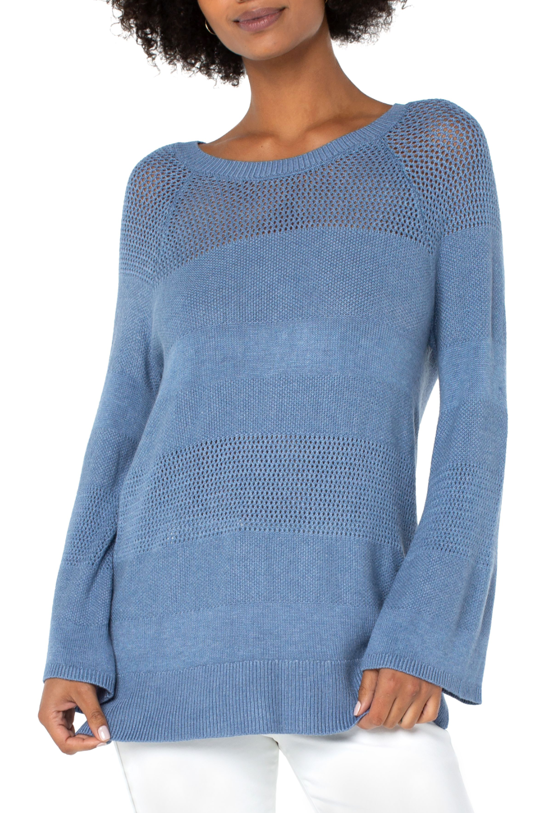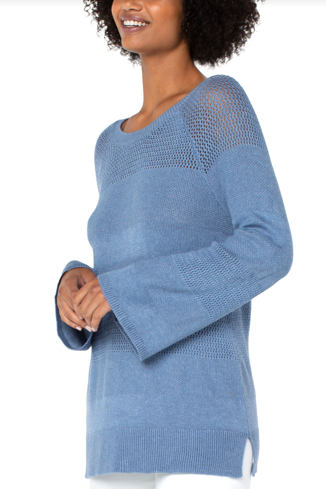 This lightweight knit sweater is great for summer. Looks great with white bottoms.