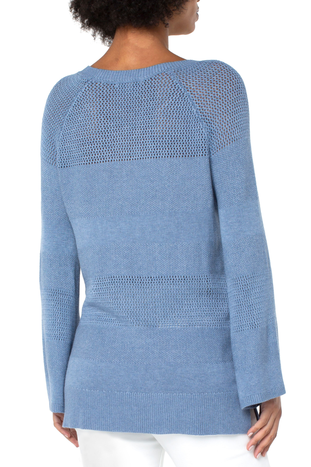Texture Blocked 3/4 Sleeve Raglan Sweater