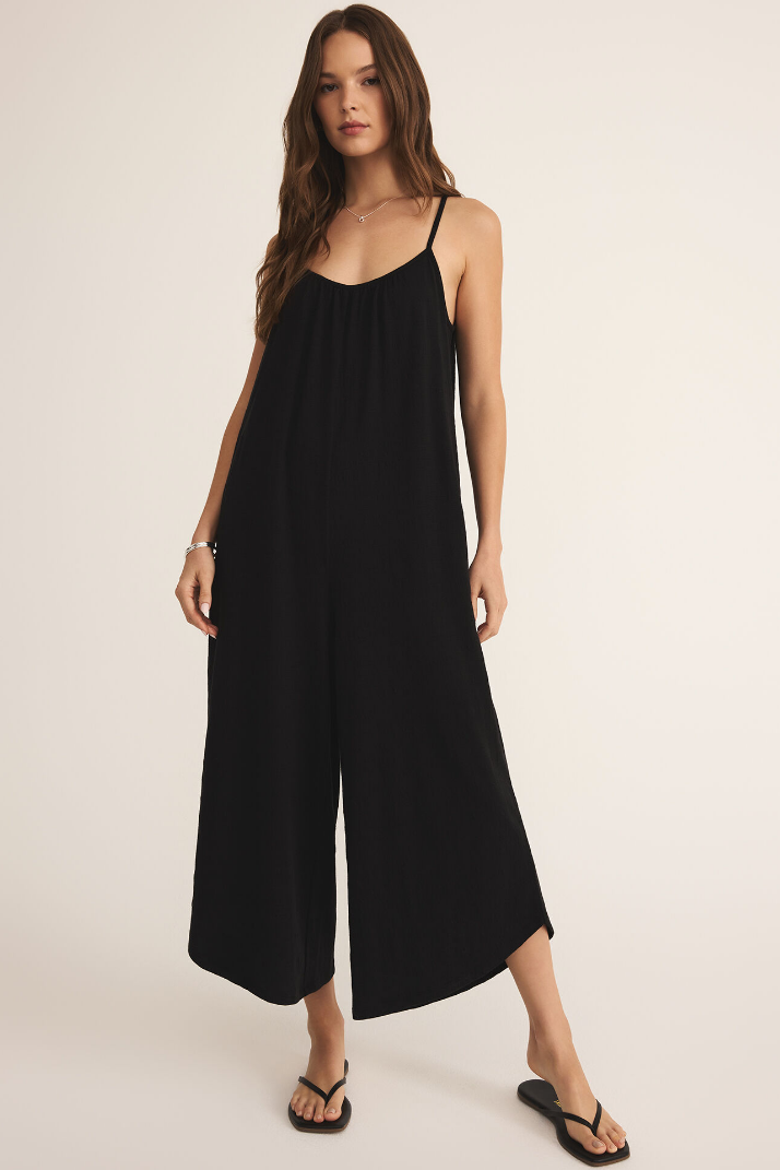 The Textured Flared Jumpsuit is great loungewear or the perfect and easy casual outfit! Featuring a scoop neck, cropped length, spaghetti strap, side seam pocket, midweight material, and a relaxed fit.