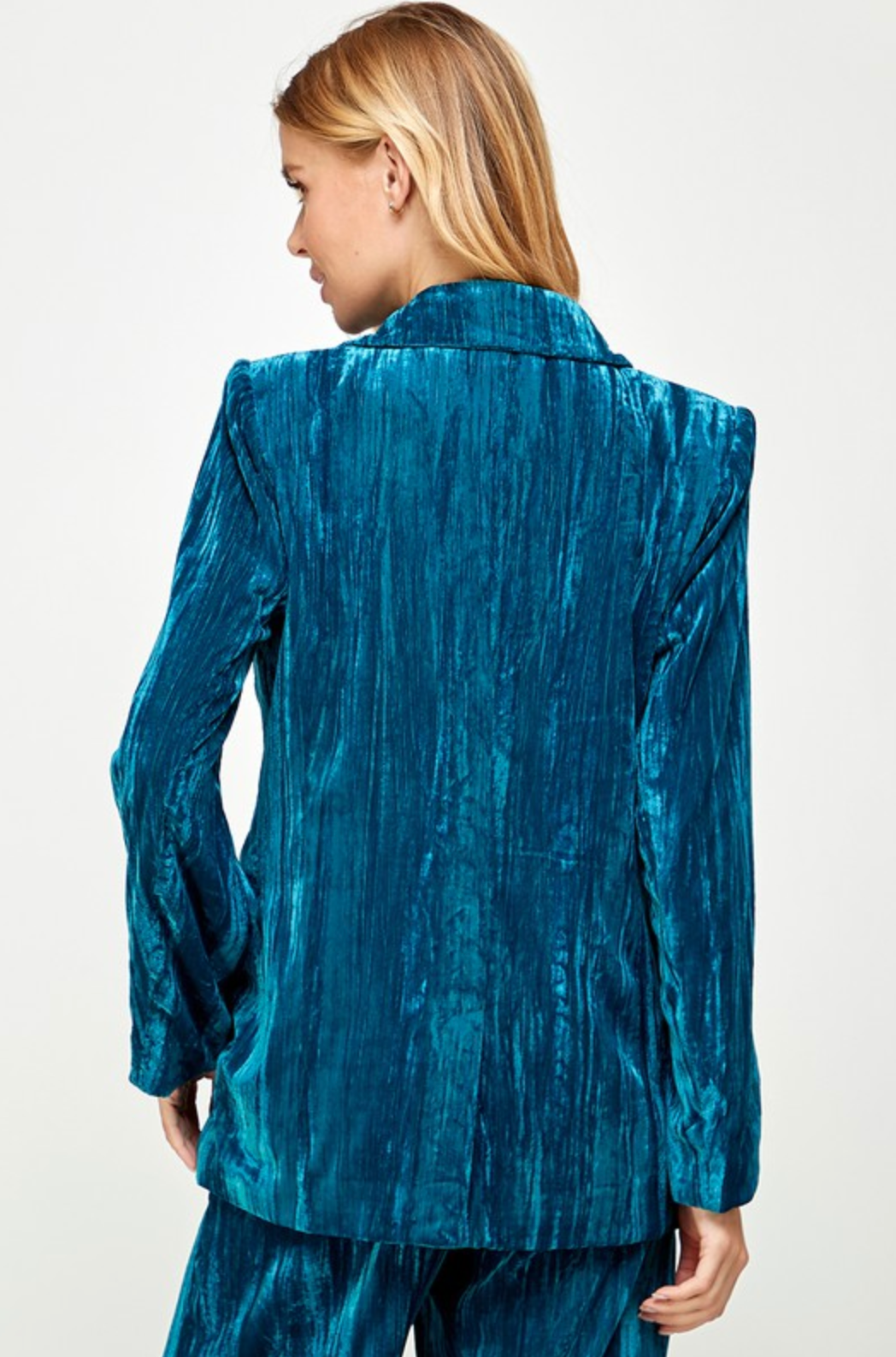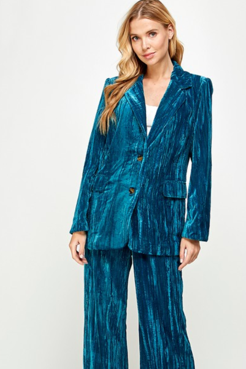 This velvet blazer looks great with the matching pants and a fitted mock neck. Makes a great holiday outfit or causal with jeans.