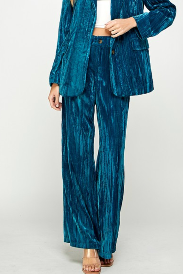 These velvet pants looks great with the matching blazer for a complete look. Or it can be paired with a fitted knit or basic long sleeve.