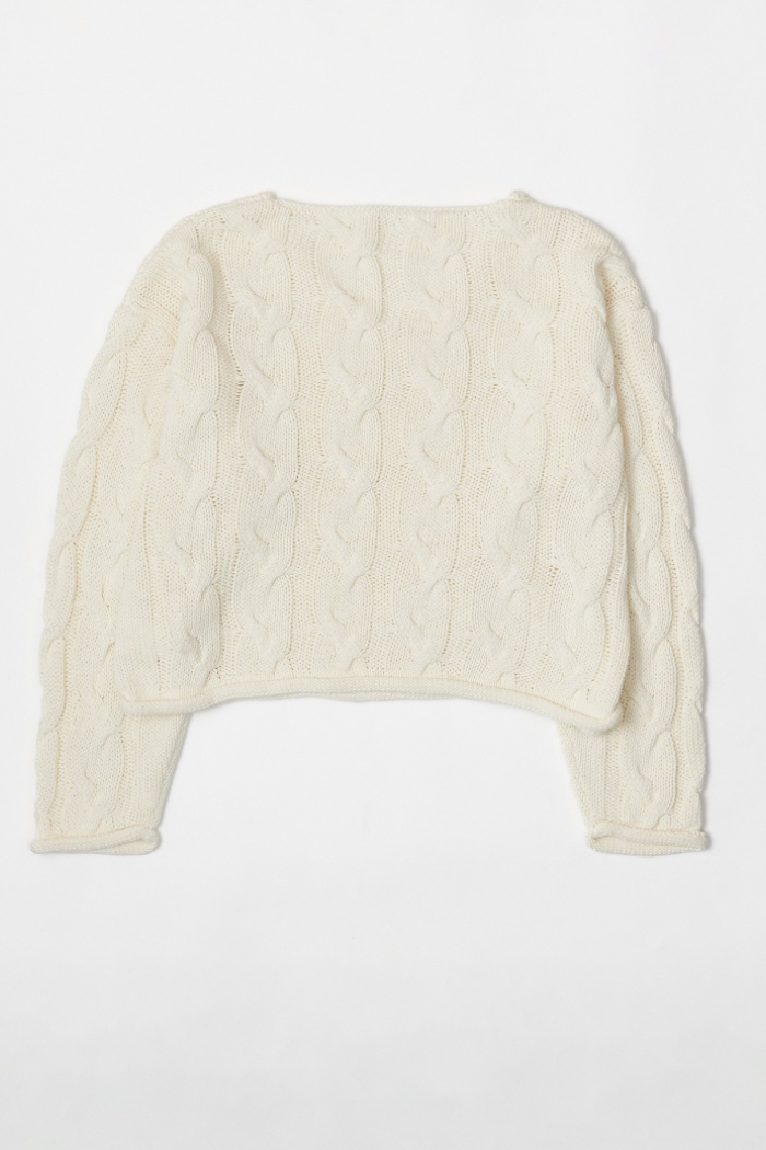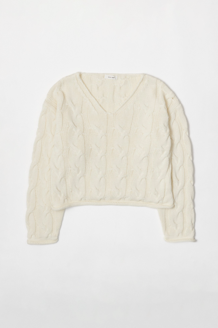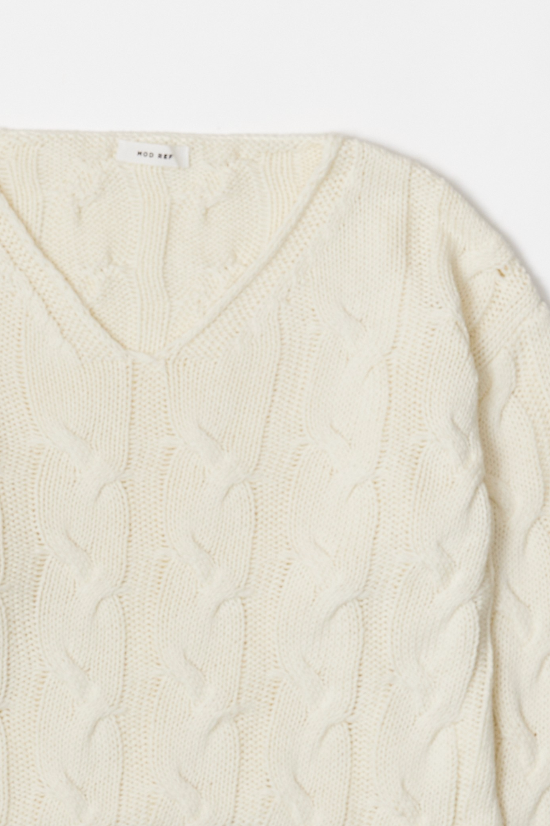 This pullover sweater has cable knit detailing along with a V neckline. With a relaxed fit, this sweater is perfect to lounge in and is ideal for layering.