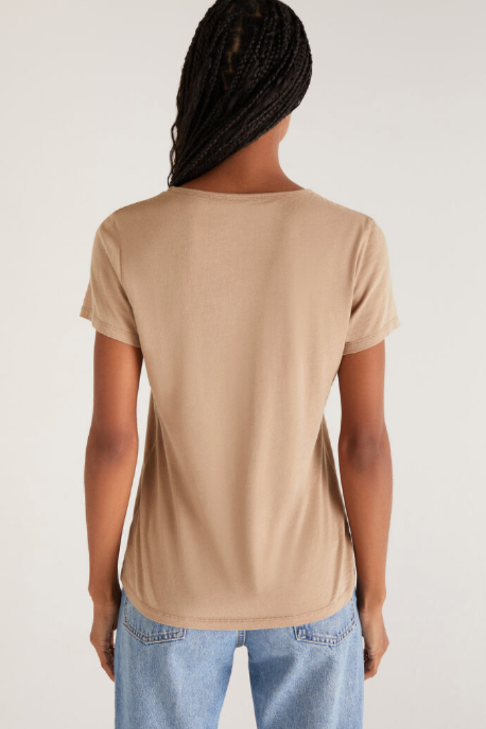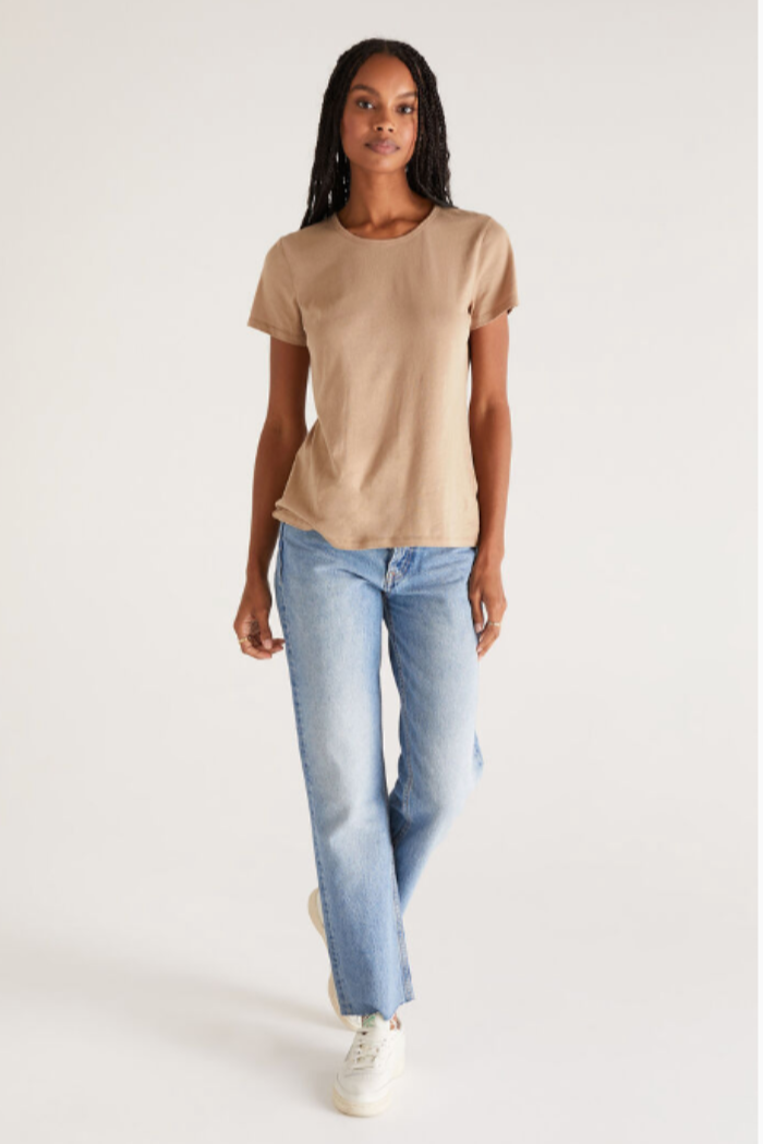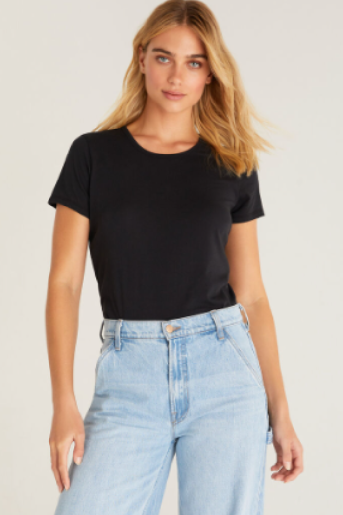 A new classic! The Classic Short Sleeve Tee is made using our brand new, ultra soft Whisper Cotton Jersey fabric and comes in four easy-to-wear colors: White, Blush Mood, Driftwood, and Black. Longer and slimmer than the Modern Tee, she can style this crew either tucked or untucked.