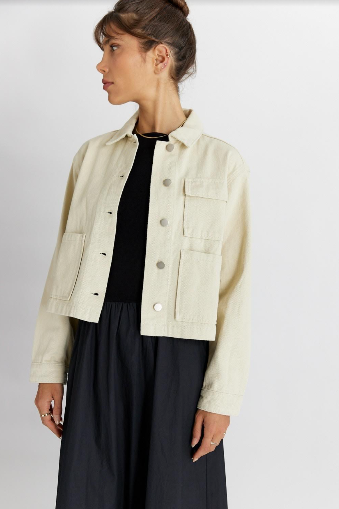 This jacket is a great alternative to a white or denim wash jacket. It gives a utility jacket look making it a statement and staple piece.