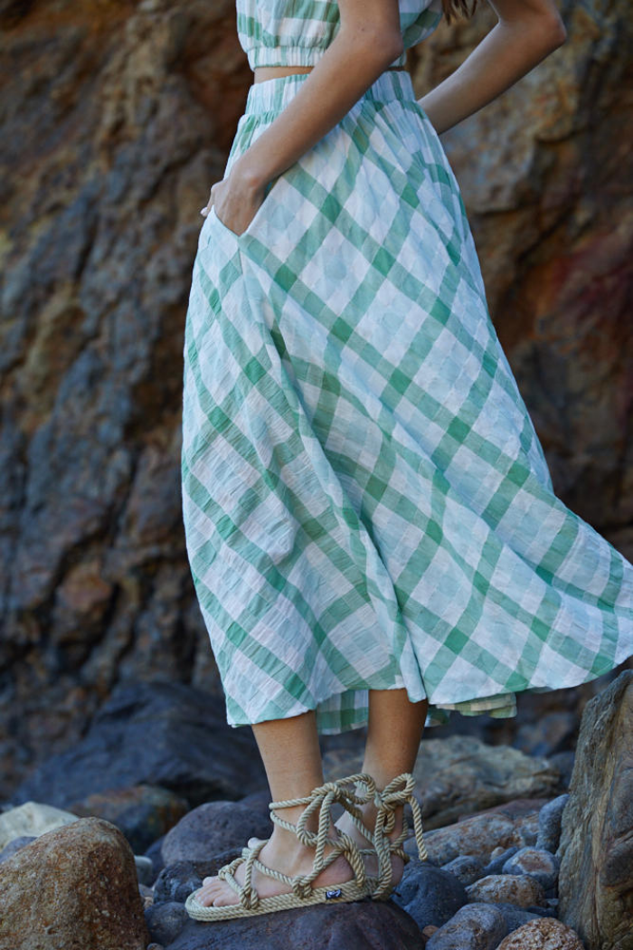 Woven Cotton Gingham Midi Skirt With Lining And Front Pockets (Optional Set #L6334