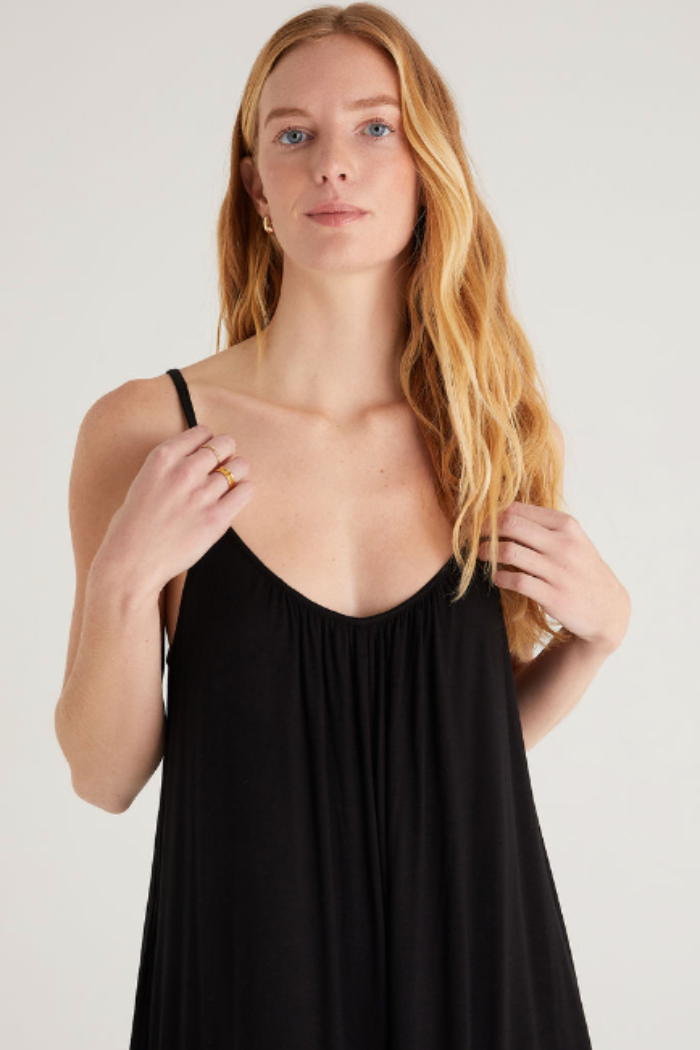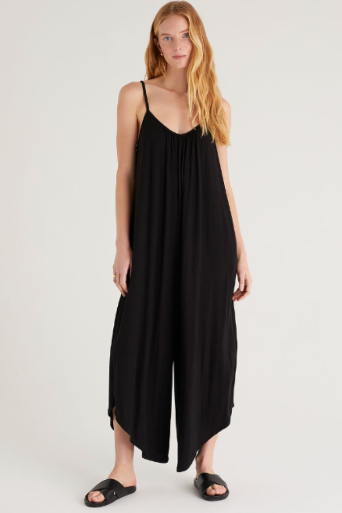 It features a scoop neckline and is made from our Rayon Spandex Sleek Jersey fabric and has adjustable straps and side pockets. With its relaxed fit and on-trend, wide leg design, this one-piece will definitely take her places.