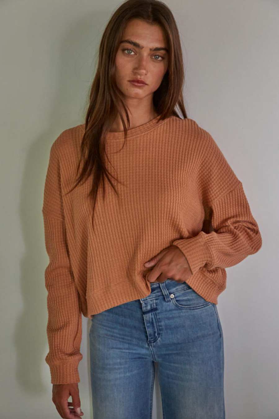 Knit Cotton Polyester Thermal Round Neck Long Sleeve Pullover Top